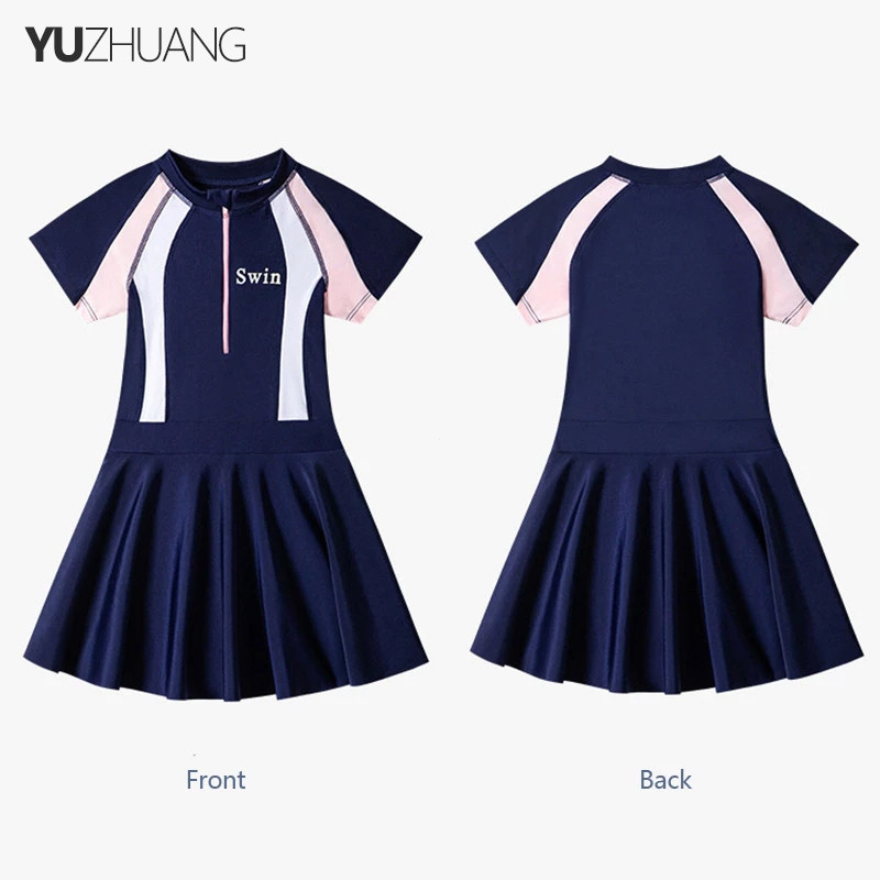 [กรุงเทพฯ จัดส่ง] ชุดว่ายน้ำวันพีซเด็กผู้หญิงอายุ 6-12 ปี แบบแฟชั่นซิป ชุดจั๊มสูท