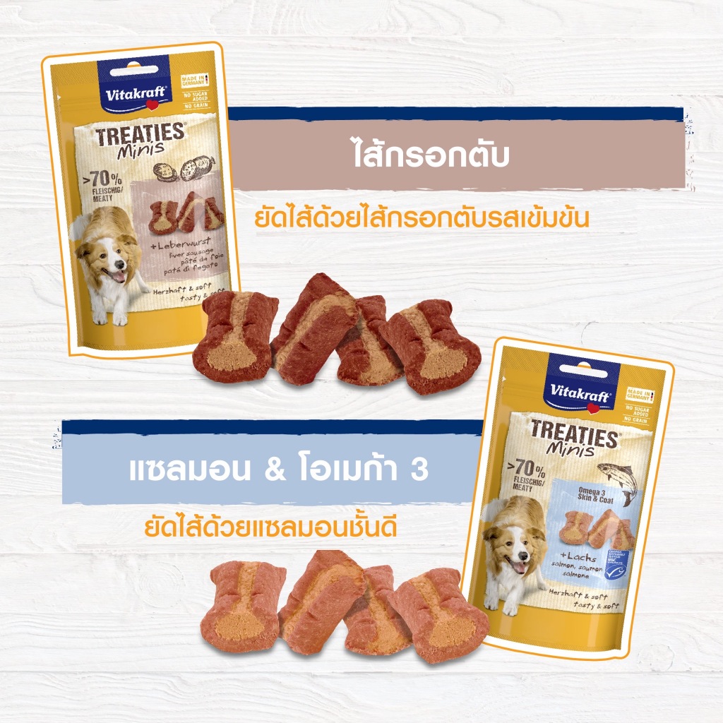 [ยกกล่อง 8 แพ็ค] Vitakraft Treaties Mini ขนมสุนัขสอดไส้ มินิ เนื้อนุ่มฉ่ำ ขนาด 48 กรัม