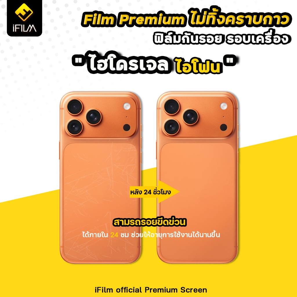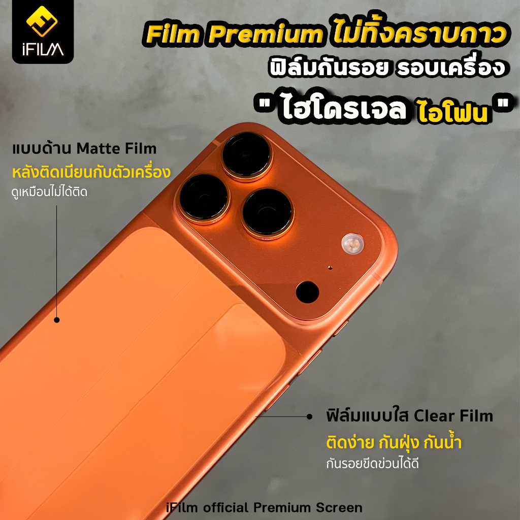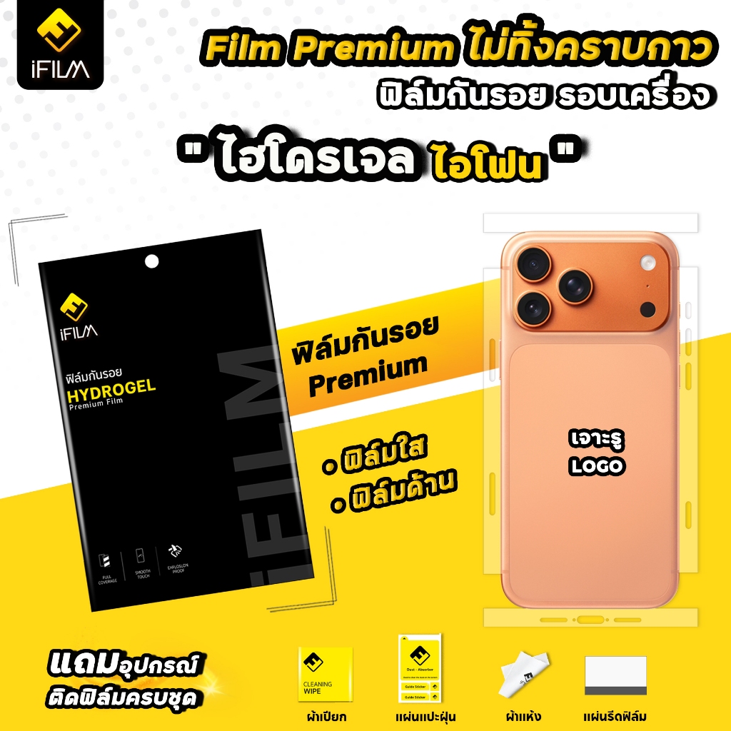 iFilm ฟิล์มหลัง คลุมขอบข้าง เว้นlogo For iPhone 17promax 17pro 17 16 promax 15 ไฮโดรเจล ใส / ด้าน ฟิล์มกันรอย รอบเครื่อง