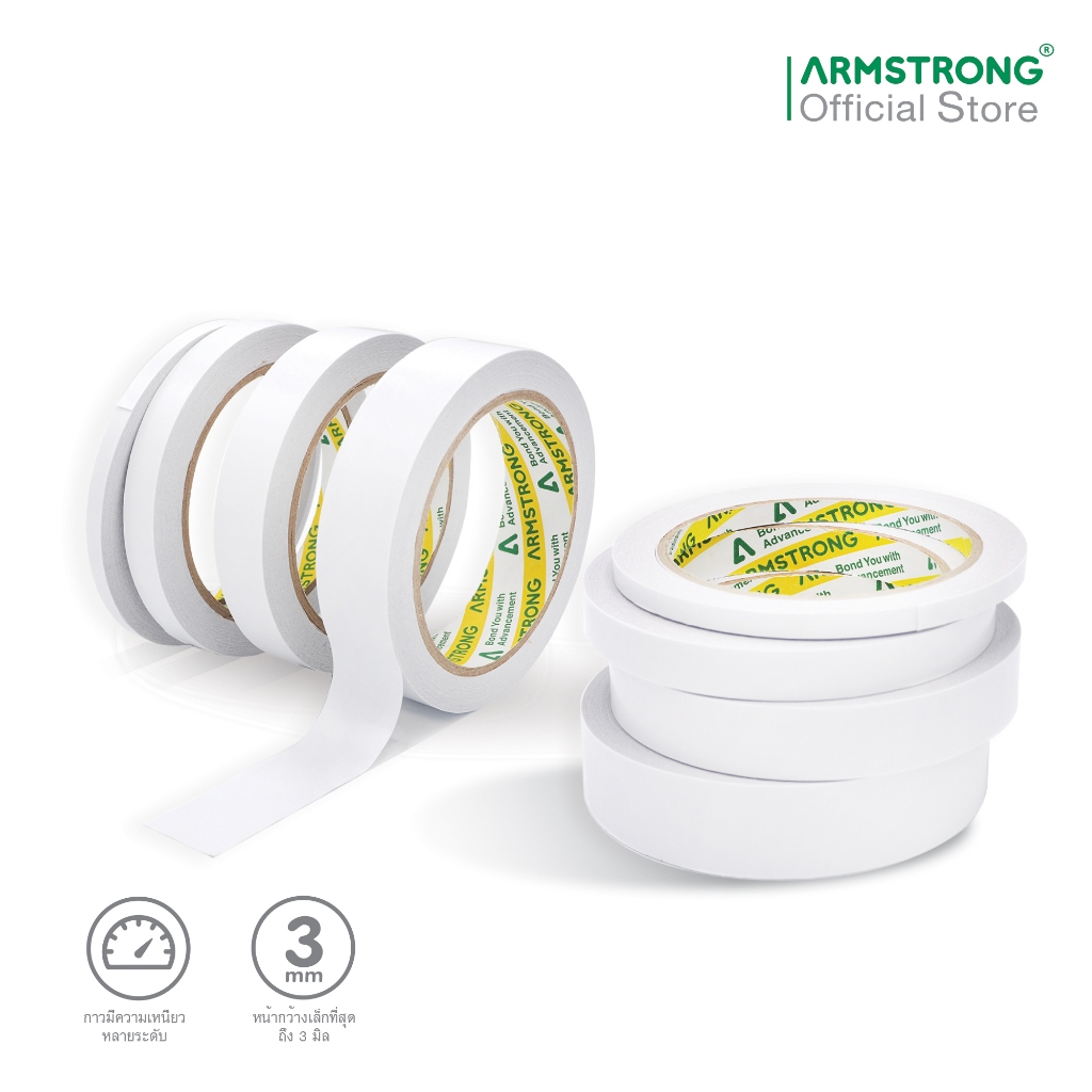 Armstrong เทปเยื่อกาวสองหน้า (ยกลังประหยัดกว่า) เทปกาวสองแบบบาง กาวเหนียวติดแน่น / Double Sided Tissue Tape