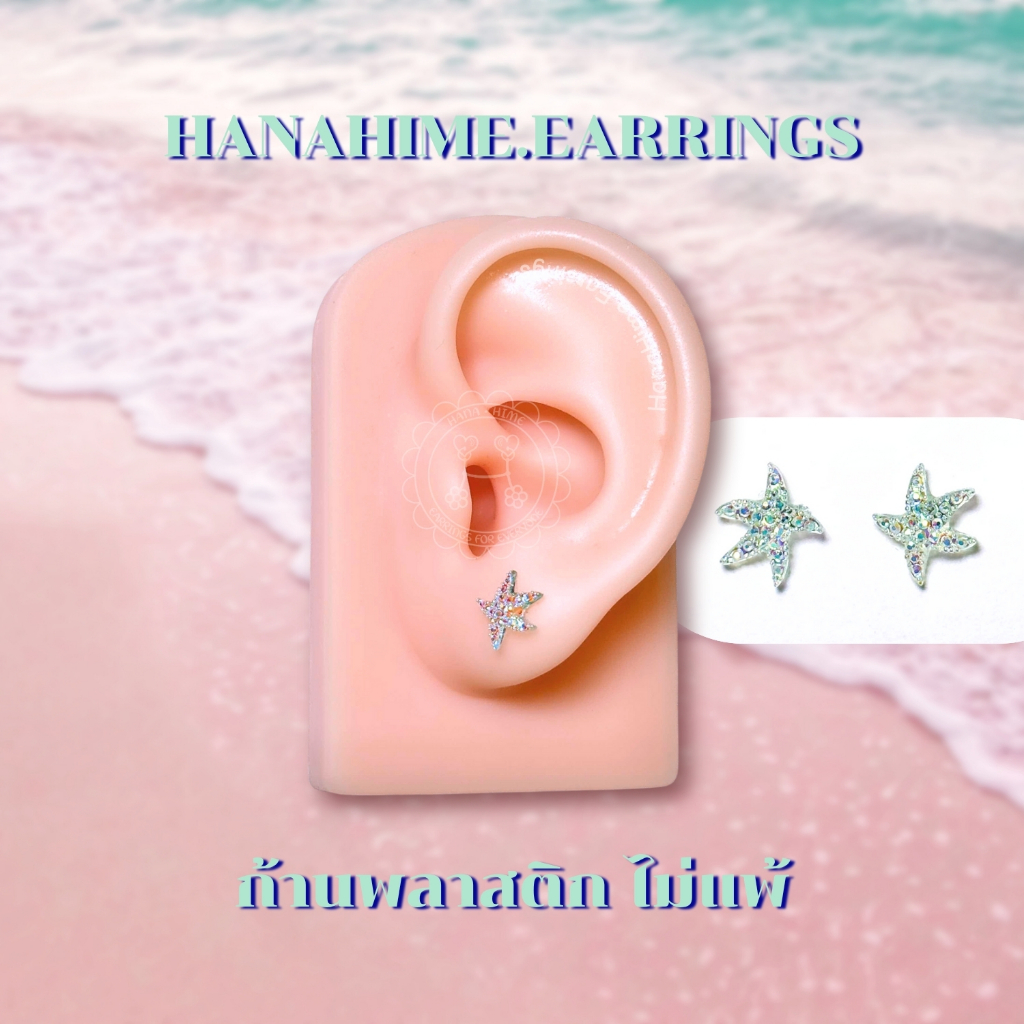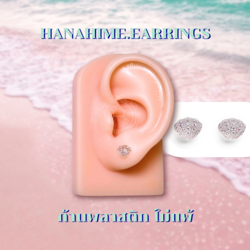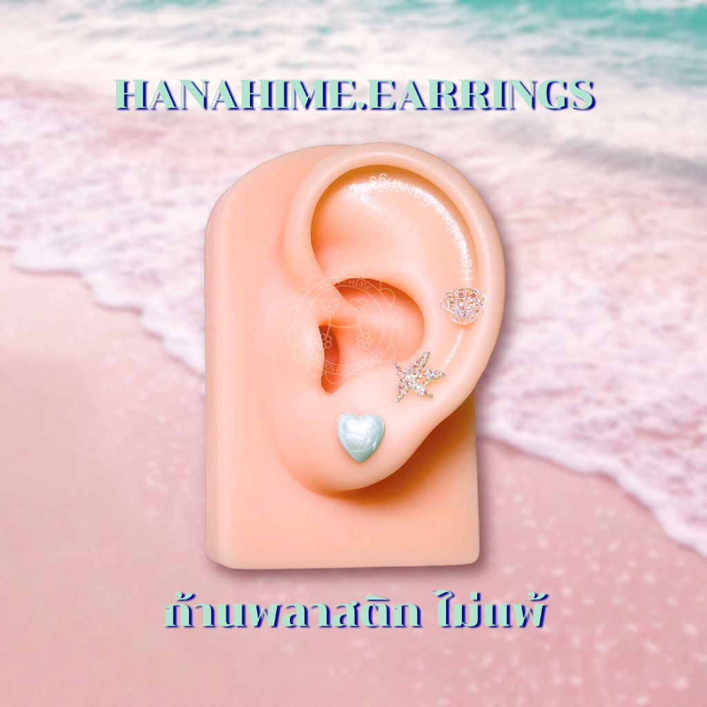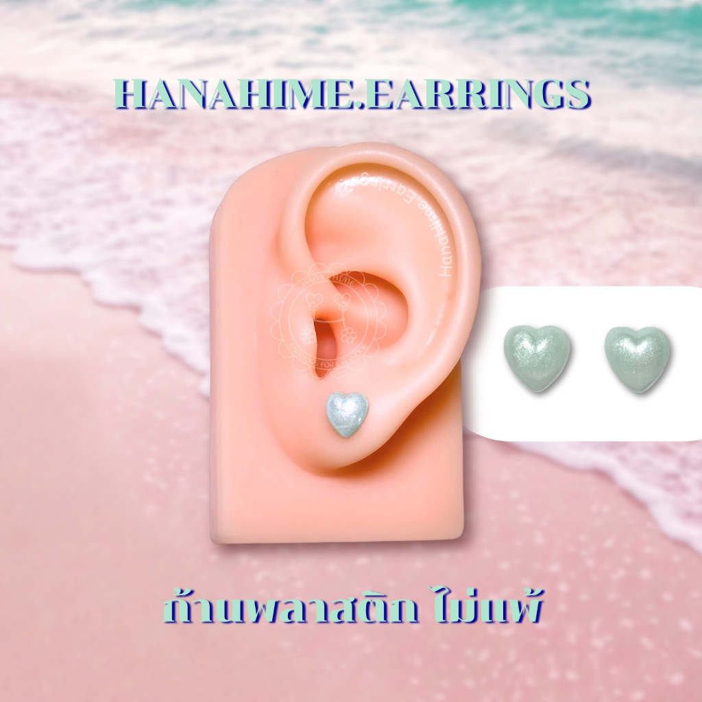 HanaHime.Earrings - Mint Beach Set ต่างหูก้านพลาสติก ต่างหูน่ารัก ต่างหูเขียว ธีมทะเล แพ้ง่ายใส่ได้