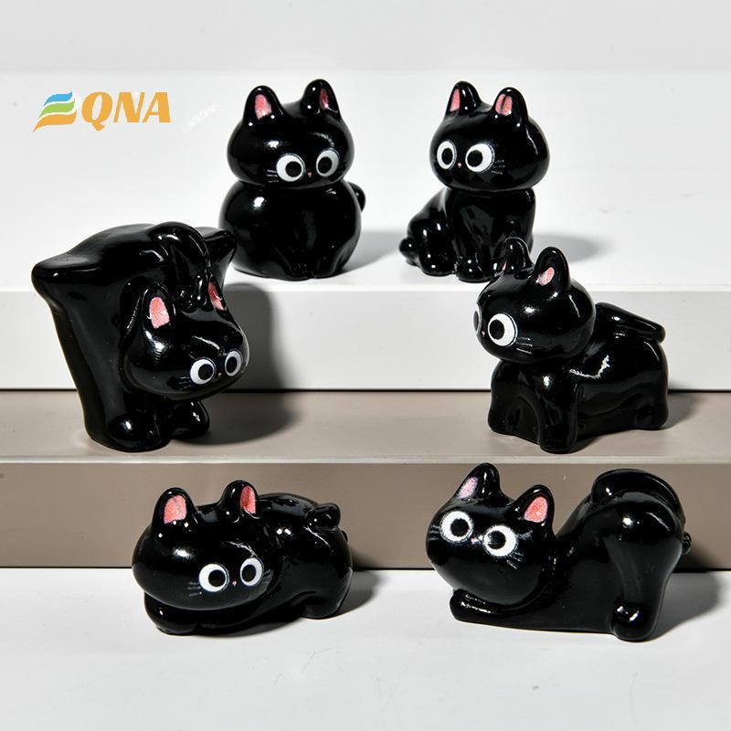 [QNA] 1/6 ชิ้นน่ารักลูกแมวเดสก์ท็อปตกแต่งห้องหุ่นการ์ตูนขนาดเล็กสีดํา Micro ภูมิทัศน์เครื่องประดับเรซินสําหรับตกแต่งบ้านใหม่