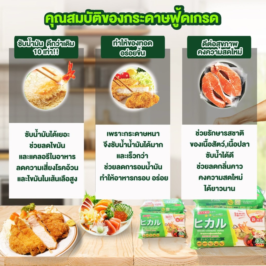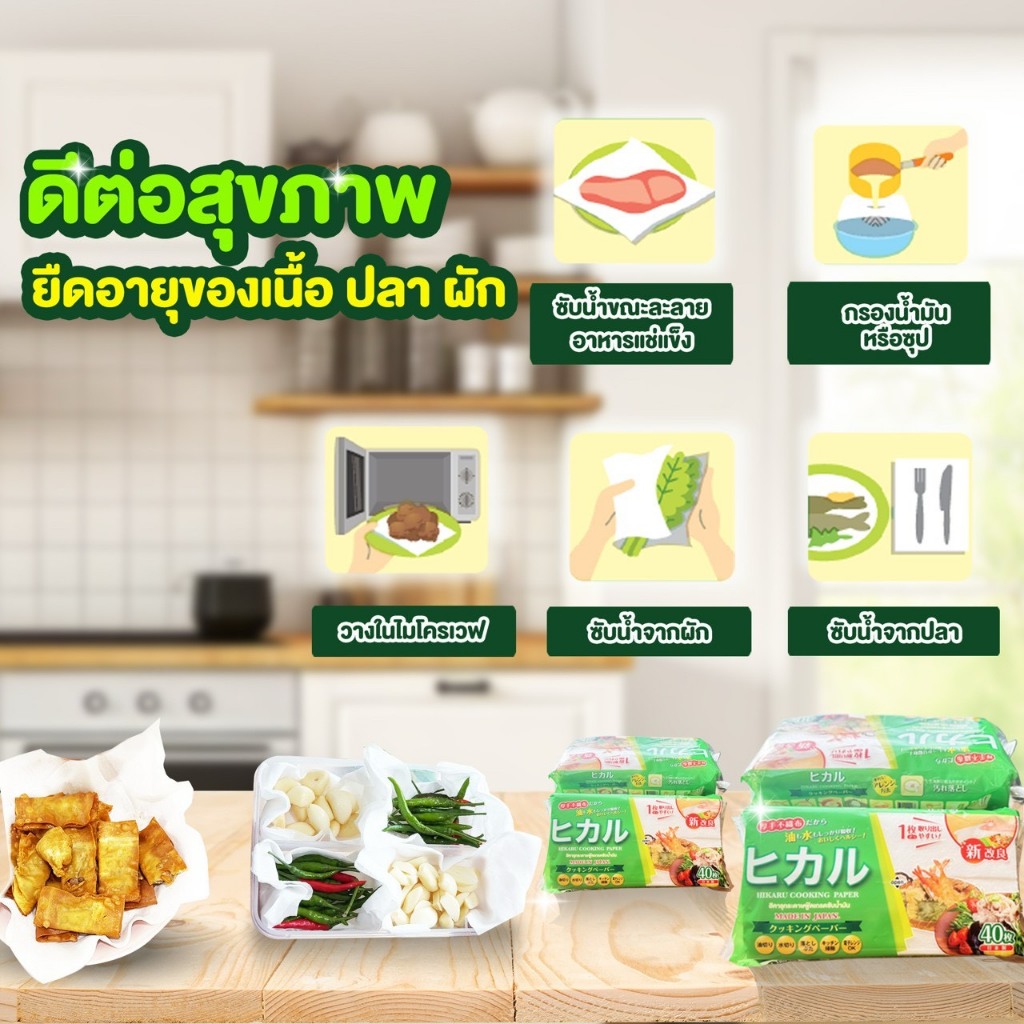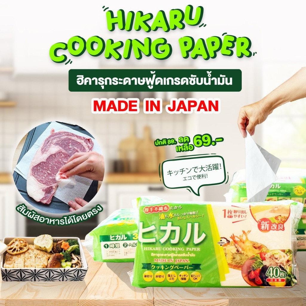 HIKARU COOKING PAPER กระดาษซับน้ำมันพรีเมียม MADE IN JAPAN 4 ห่อ แถม Hikaru Tissue 4 ห่อ