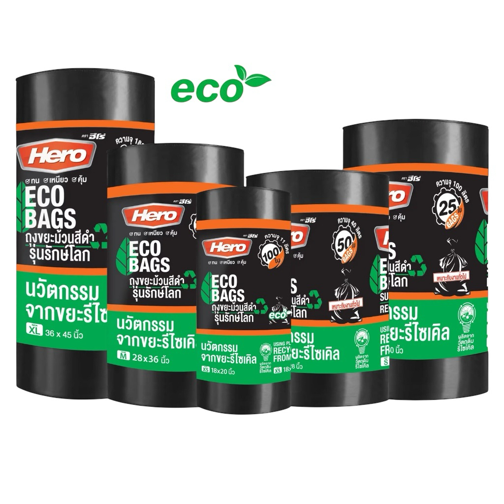 (ม้วน) ถุงขยะม้วนสีดำ รุ่นรักษ์โลก ตรา HERO | LAILA
