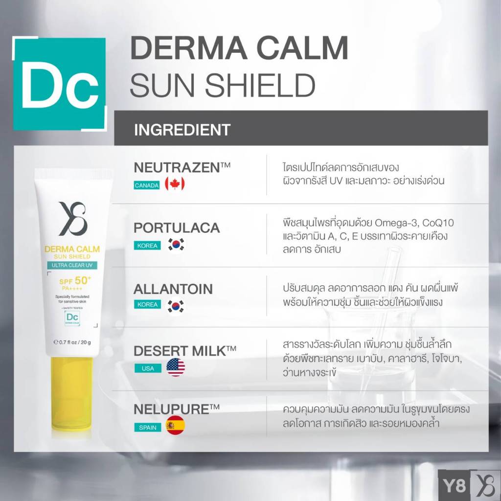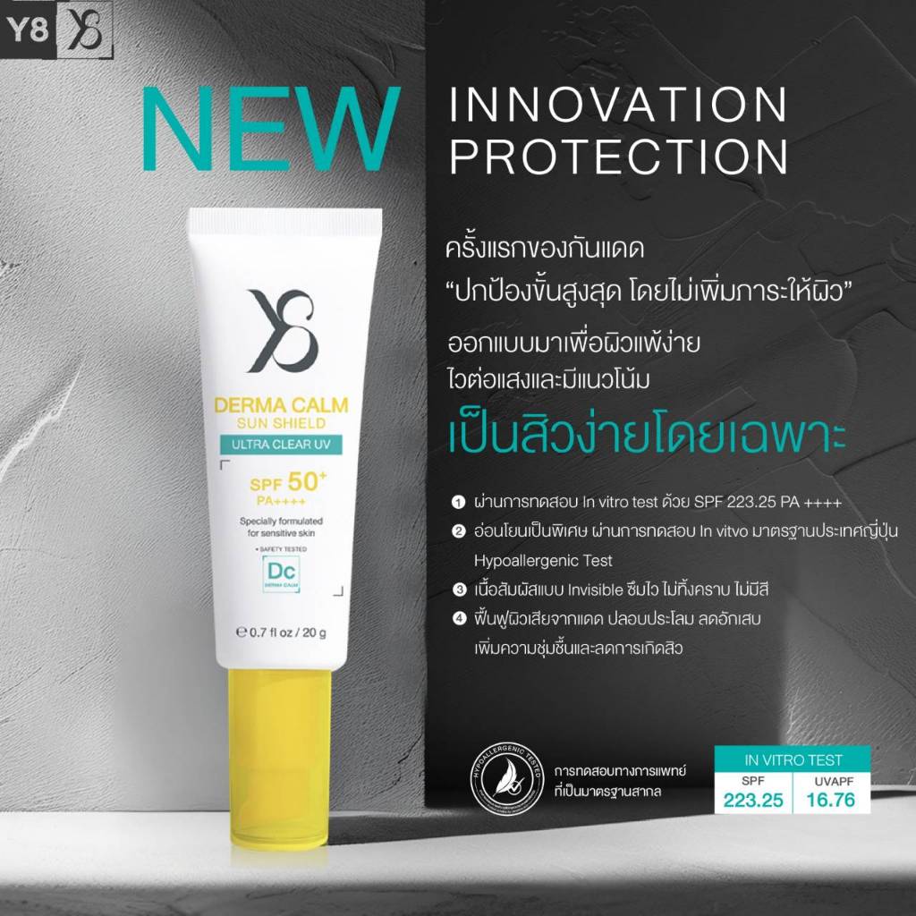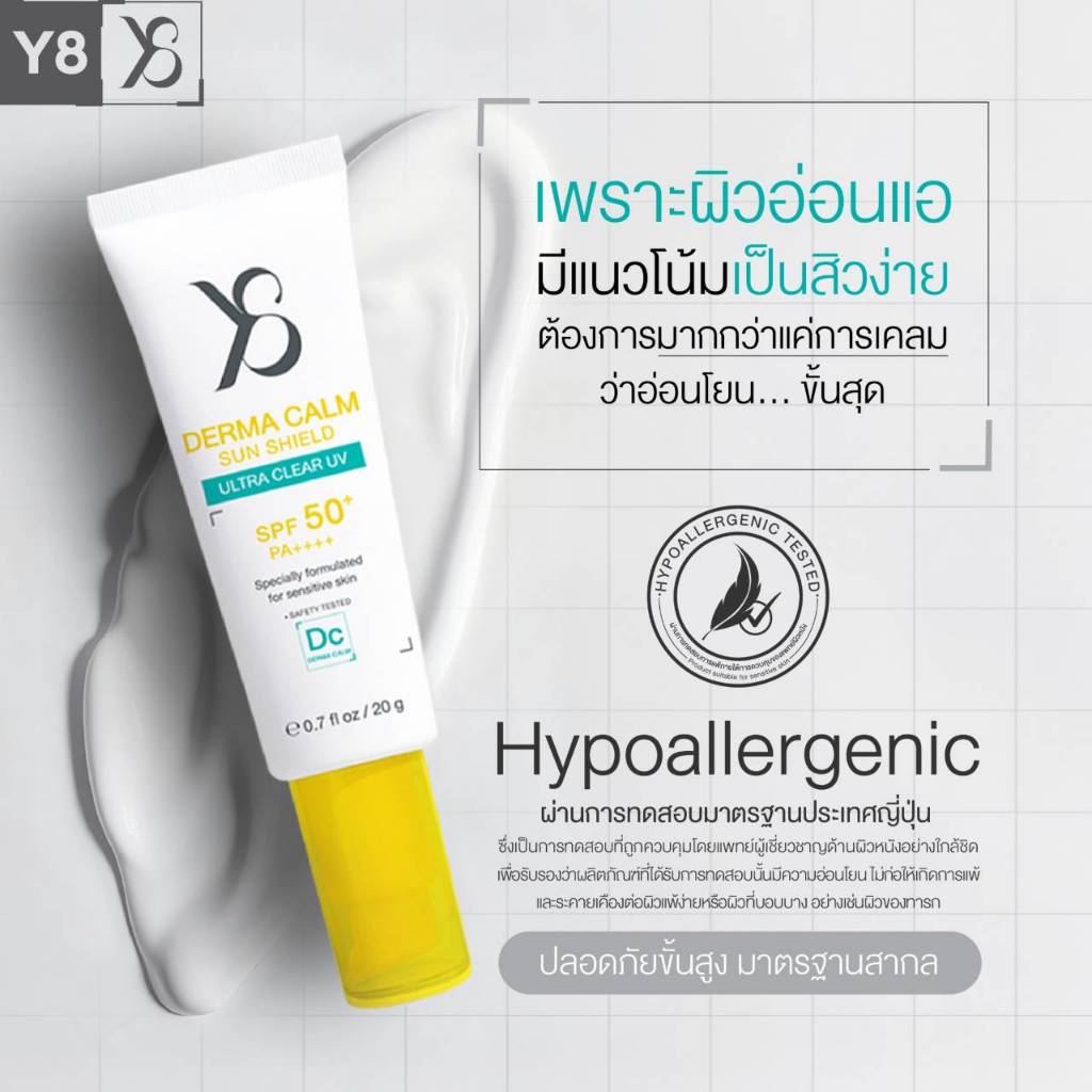 [ของแท้ 100%] Y8 Derma Calm Sun Shield SPF50+ PA++++ | กันแดดสำหรับผิวแพ้ง่าย เป็นสิวง่าย