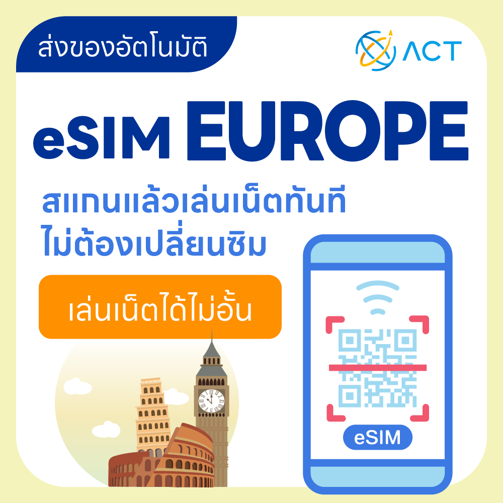 【ACT】eSIM ยุโรป|รองรับ 5G/4G|ซิมเน็ตเดินทางยุโรป|จัดส่งอัตโนมัติ 24 ชม.|ใช้งานได้ใน 39 ประเทศยุโรป