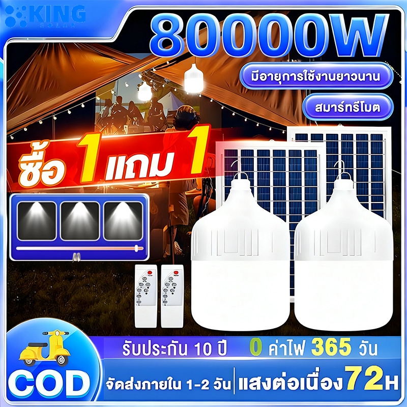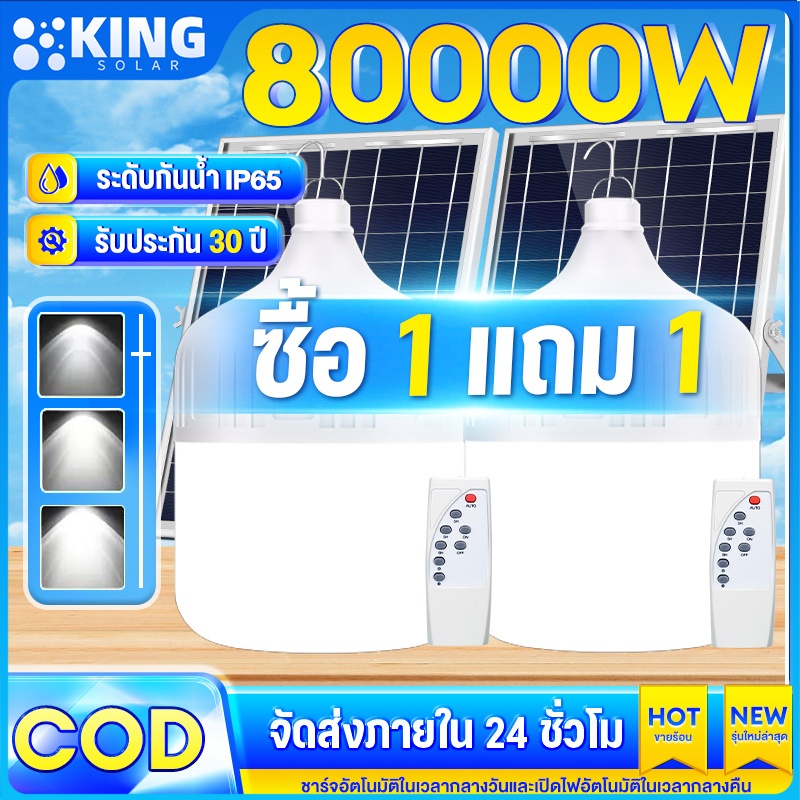 KING ไฟโซล่าเซลล์ หลอดไฟโซลาเซล์ 500W 2000W 80000W Solar Light Bulb ชาร์จไฟอัตโนม IP65 ไฟภายนอกอาคาร