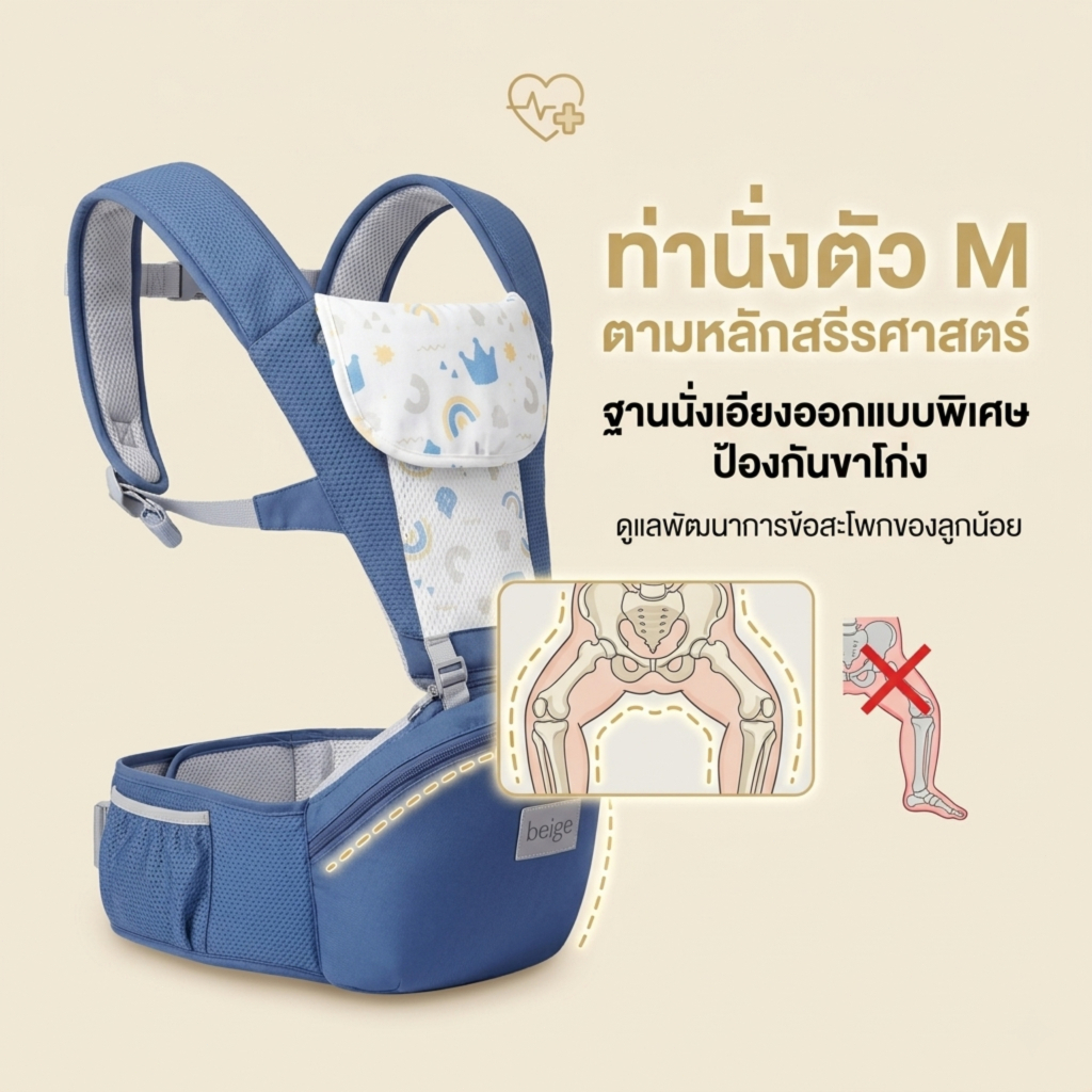 Beige เป้อุ้มเด็ก เป้อุ้มเด็กแรกเกิด เป้อุ้มเด็กฝ้าย การจัดเก็บที่ดี พกพาสะดวก 0-36M