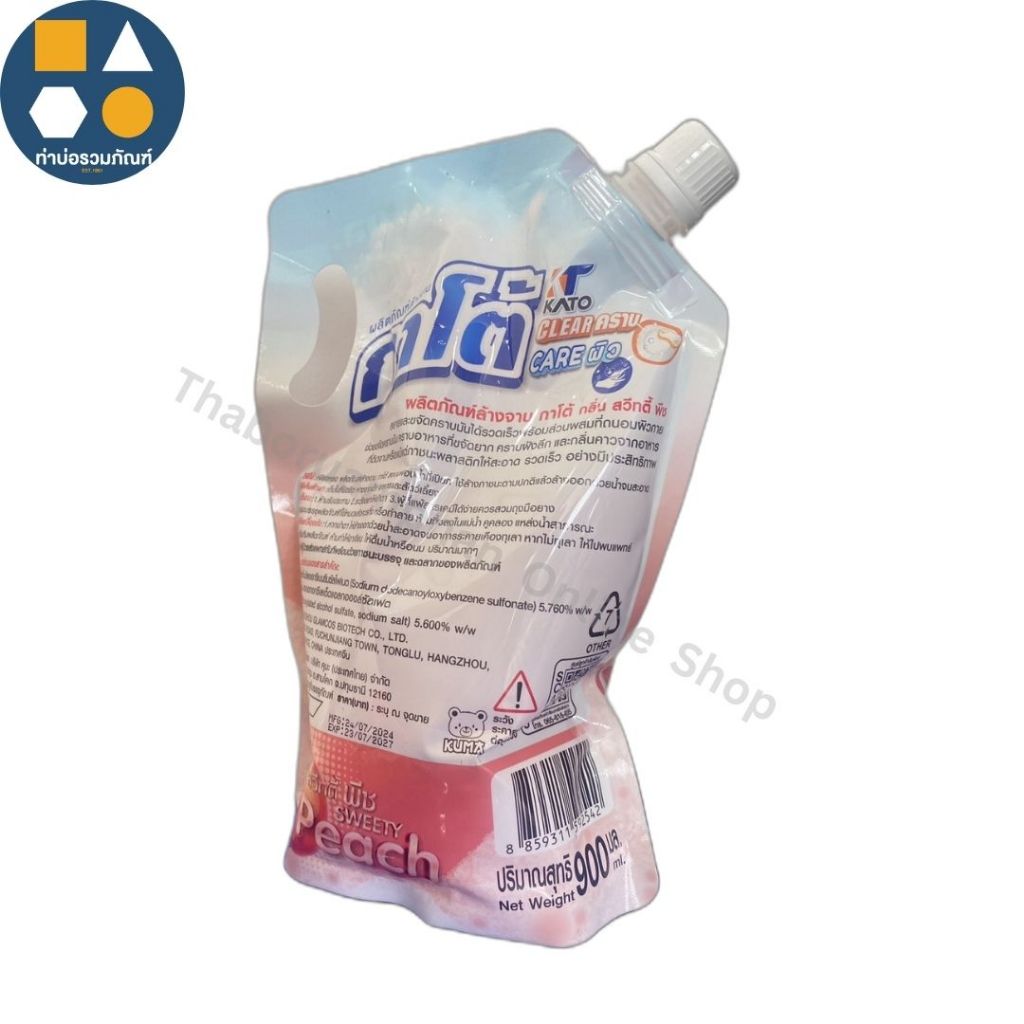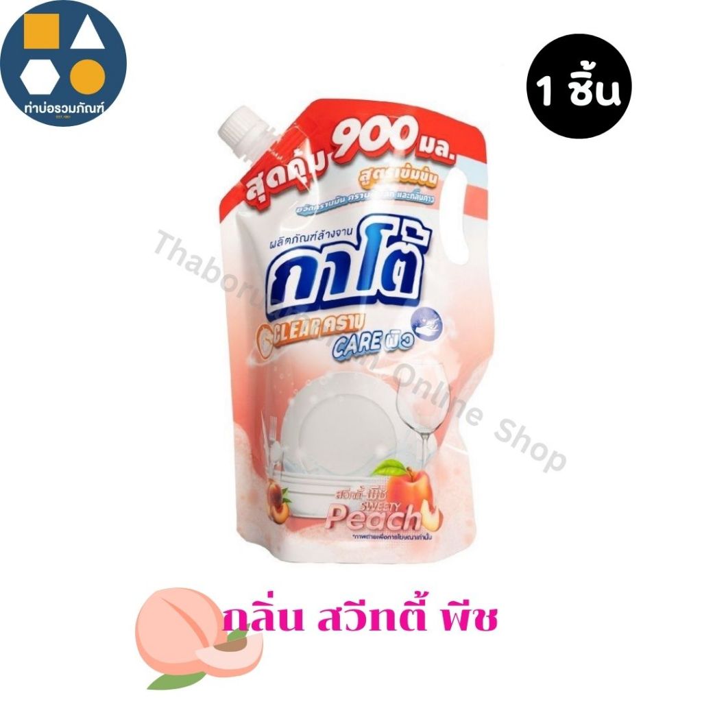 [ถุงเดี่ยว 1ถุง] ผลิตภัณฑ์ล้างจาน กาโต้ สูตรเข้มข้น สุดคุ้ม 900มล. เคลียร์คราบ เคลียร์ผิว กลิ่นสวีทตี้ พีช