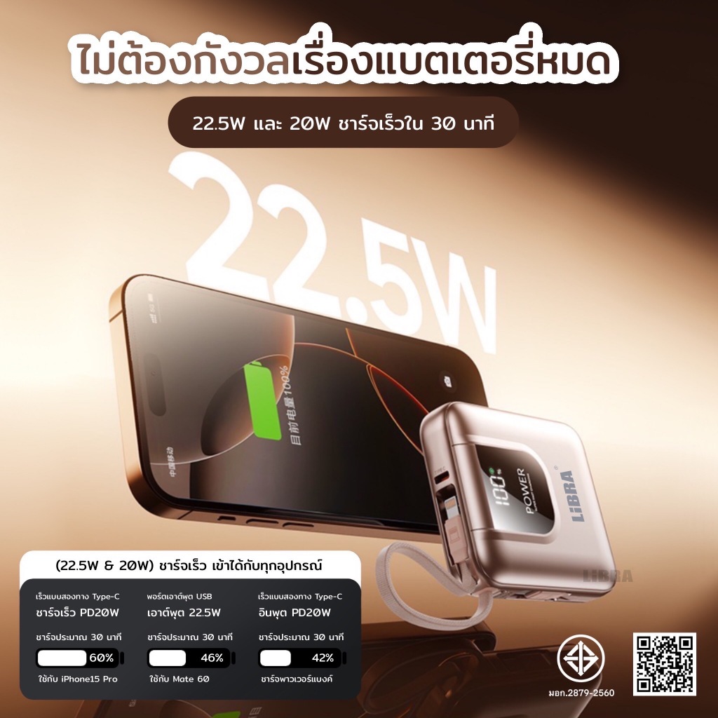 LiBRA Q71 PowerBank 10000mAh สามารถชาร์จพร้อมกันได้ 3 อุปกรณ์ จอแสดงLED พร้อมสายชาร์จเร็ว