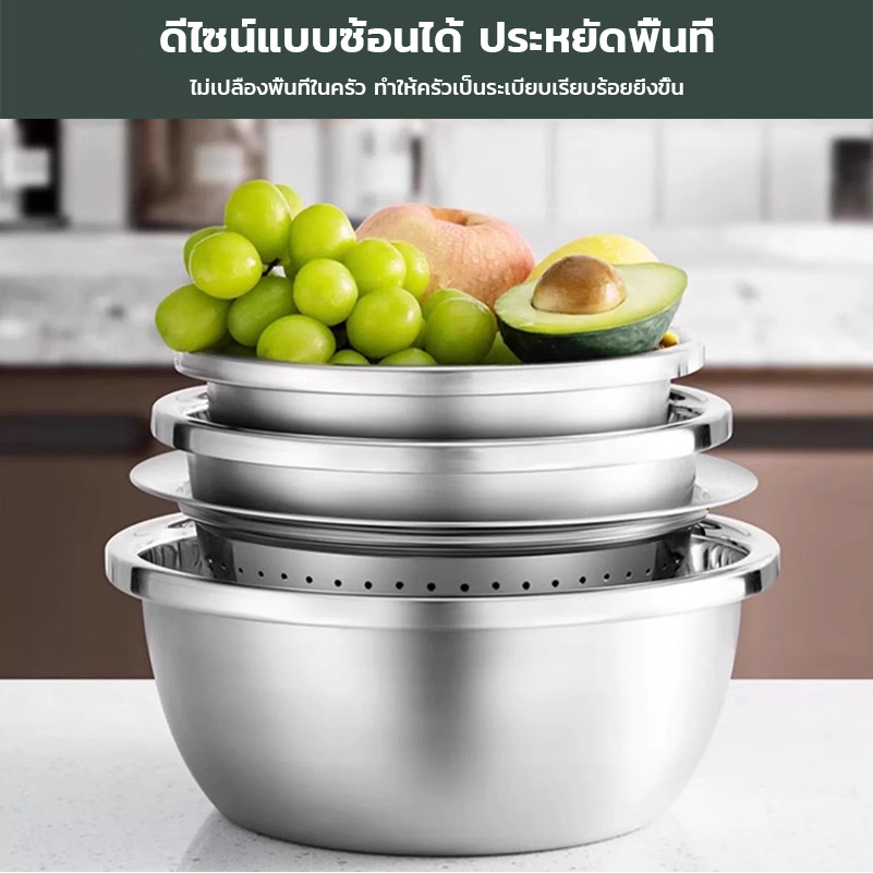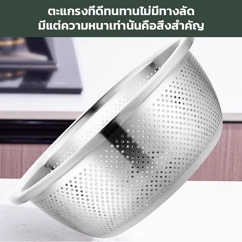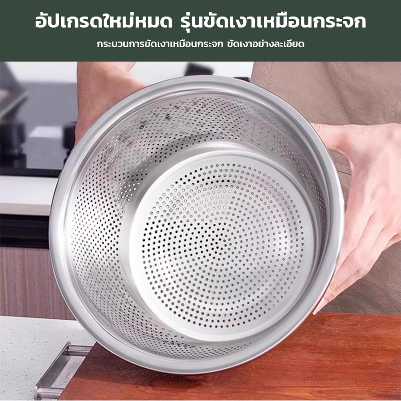 กะละมังสแตนเลสมีรู 304 กะละมังรูล้างผัก ผลไม้อย่างหนา สแตนเลสแท้ ไม่ขึ้นสนิม ใช้ดี ช่วยให้ผัก ผลไม้ เสด็จน้ำ มีให้เลือก