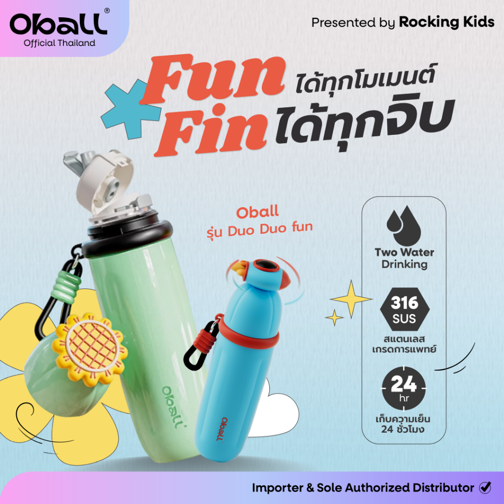 Oball รุ่น Duo Duo fun แก้วน้ำเก็บอุณหภูมิ เก็บความเย็นนาน 24 ชม. ความจุ 420 มล.