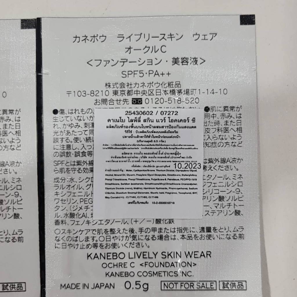 ของแท้100%_สินค้าเคาน์เตอร์ไทย_รองพื้นคาเนโบ Kanebo Lively Skin Wear 0.5 mL. แบบซอง