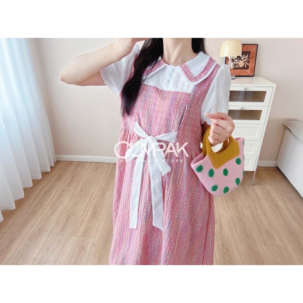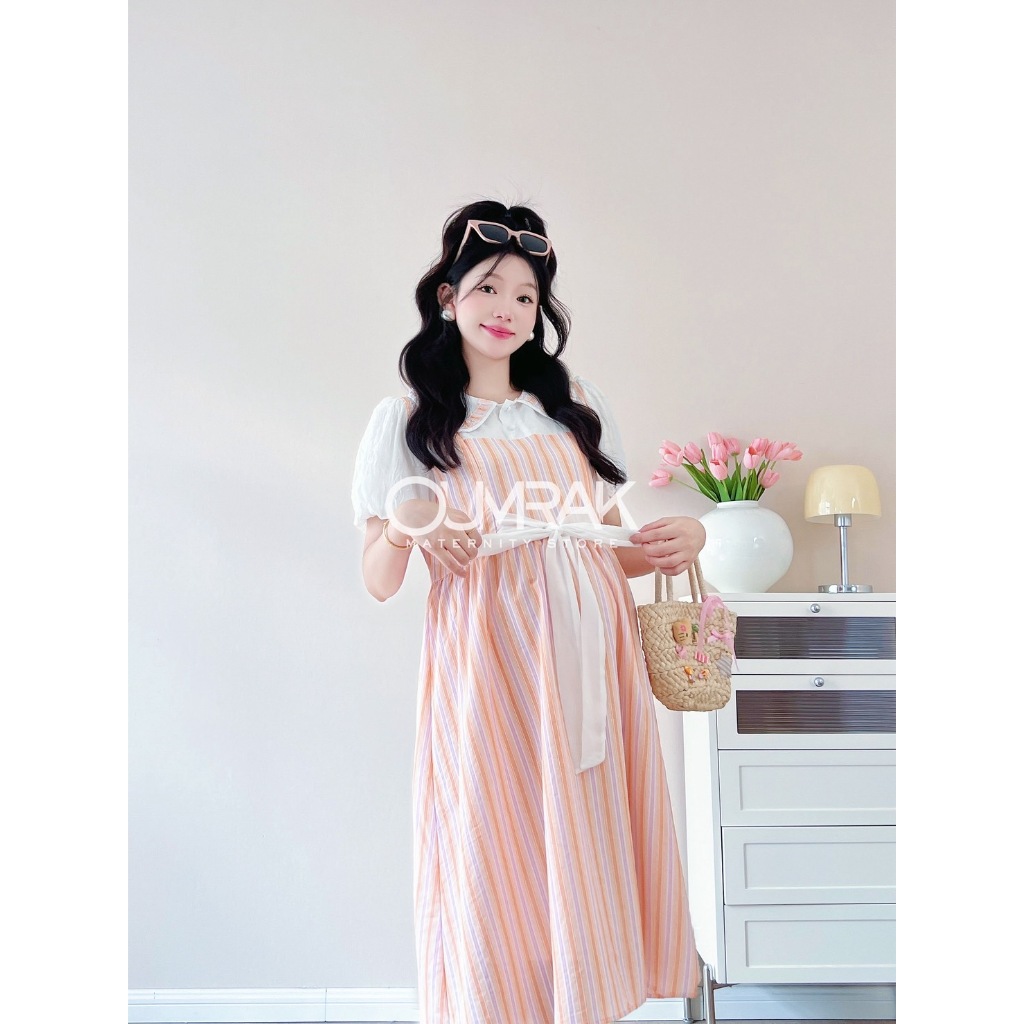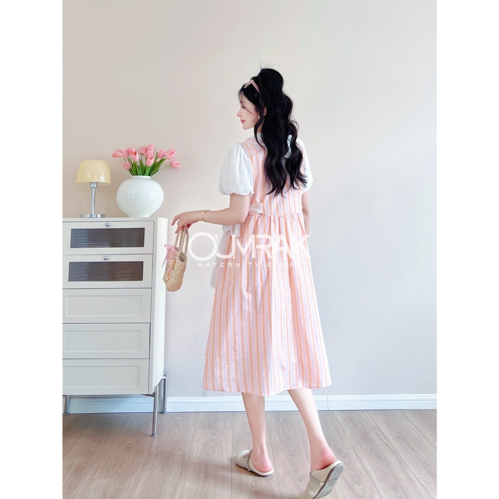 BB1192 งานแบรนด์อุ้มรัก เดรสคลุมท้องสีหวานละมุน เนื้อผ้าเบา ใส่สบาย ๆ มีซิปซ่อนเปิดให้นมได้ มีสายผูกเอว