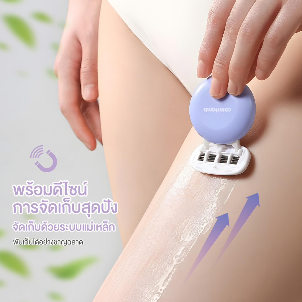มีดกําจัดขน โกนขนผู้หญิง เครื่องโกนขนรักแร้ ใบมีดห้าใบ ว่านหางจระเข้ มินิพกพา ไม่ระคายเคืองผิว การดูดแม่เหล็ก