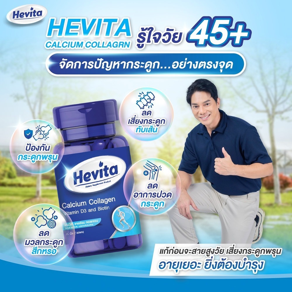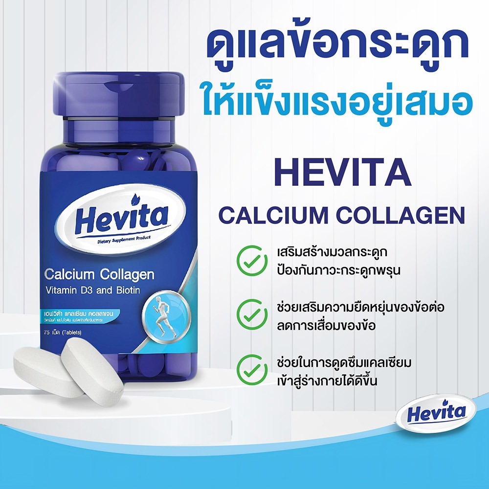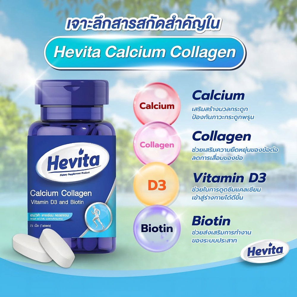 Hevita Calcium Collagen Vitamin D3 Biotin เฮฟวิต้า แคลเซียม คอลลาเจน วิตามินดี 3 ไบโอติน [75 เม็ด]