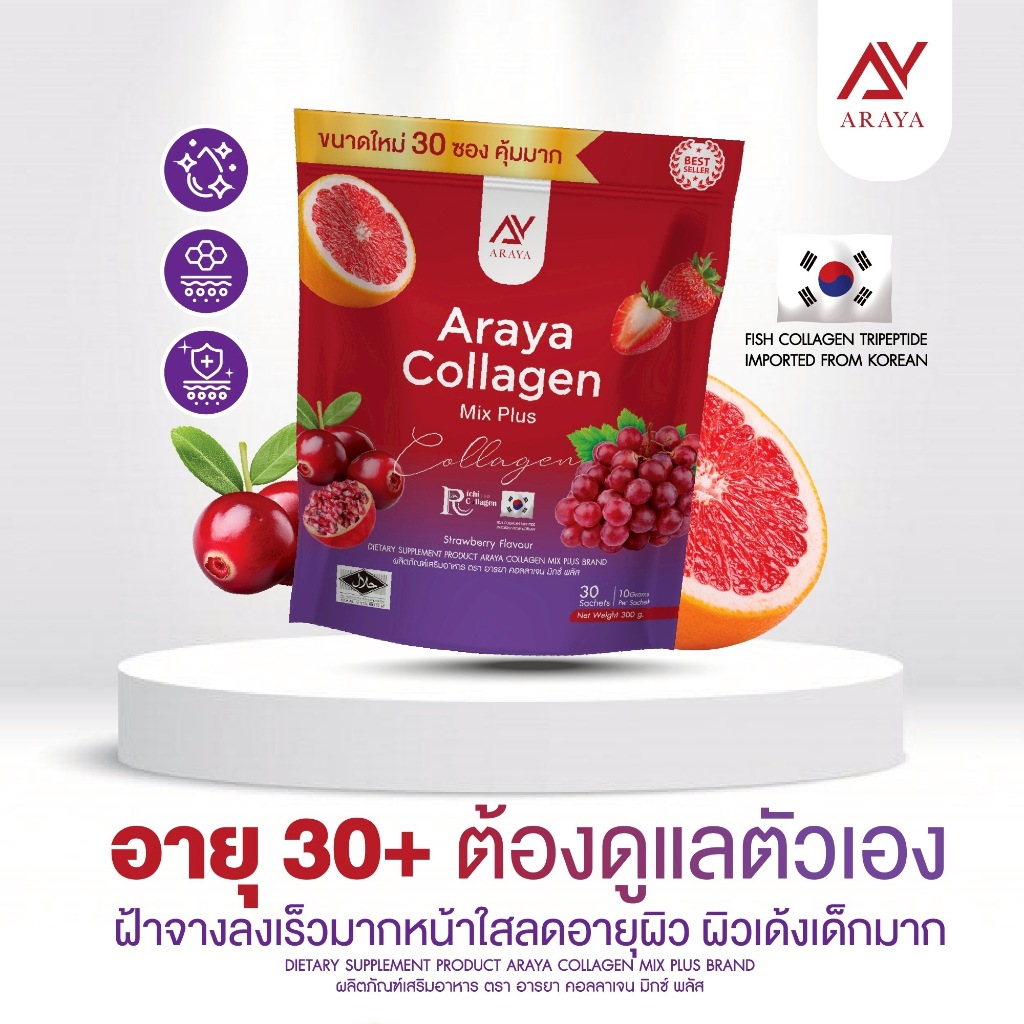 ( 1 แถม 1 ) ได้ 60 ซอง อารยาคอลลาเจน Araya collagen Mix Plus อารยา คอลลาเจน