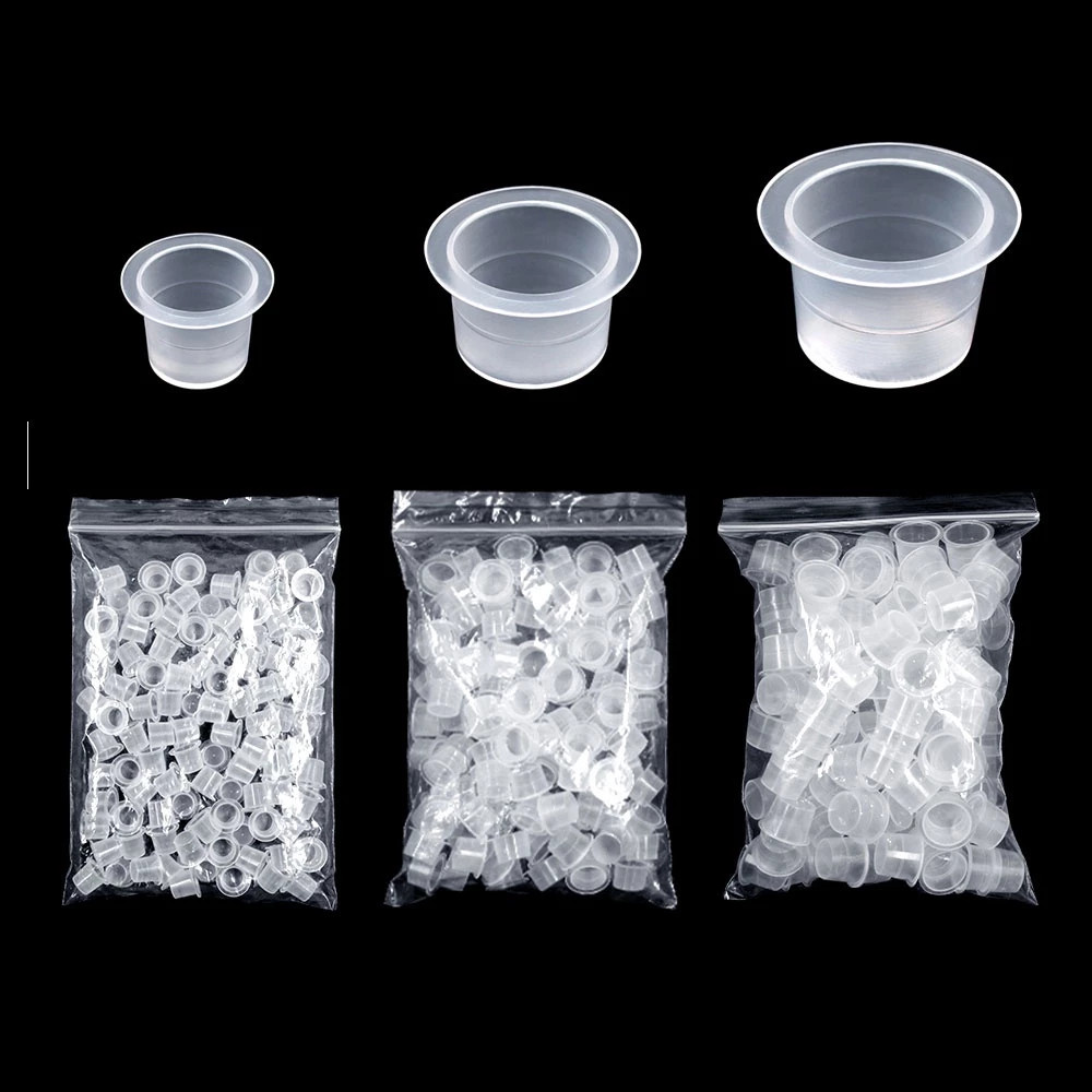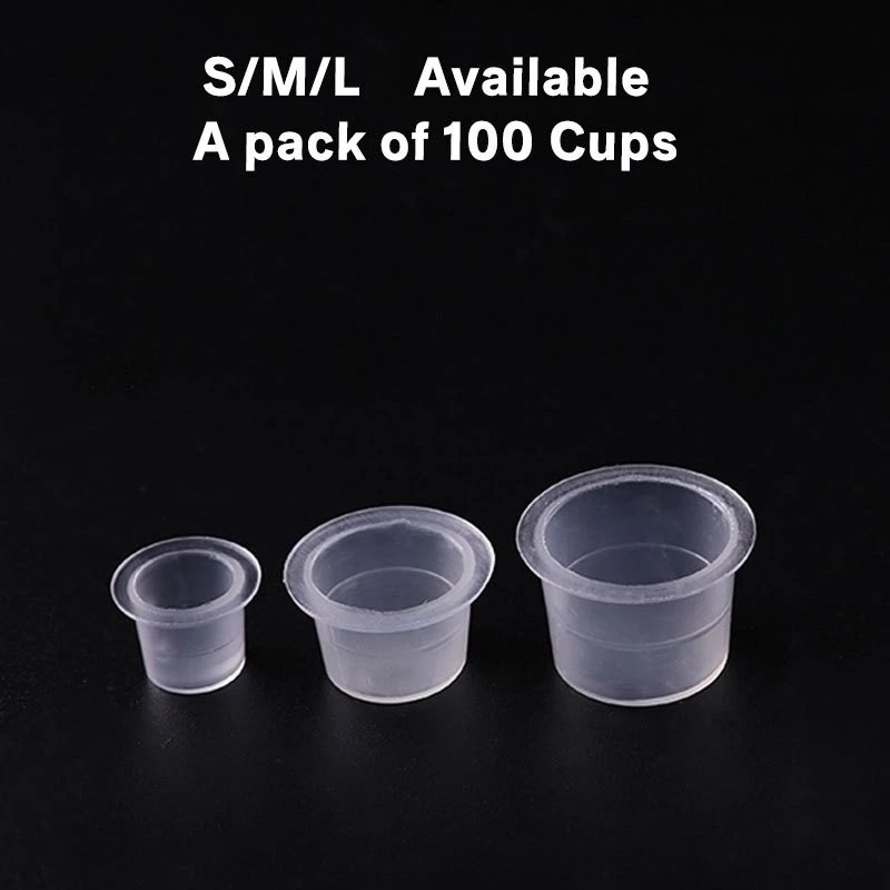 Tattoo ฝาใส่สีสัก จุกใส่สีสัก แบบมีฐาน ขนาด S M L ถุงละ 100ชิ้น ฝาใส่หมึกสัก จุกใส่หมึกสัก สักลาย สําหรับเครื่องสัก