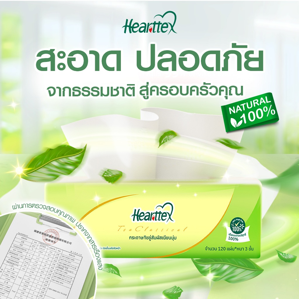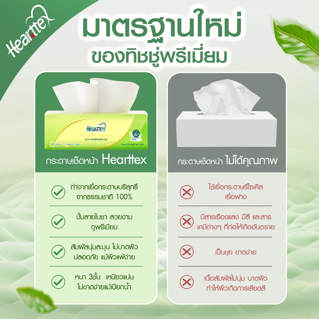 Hearttex ทิชชู่เช็ดหน้า Soft Pack 3 ชั้น 120 แผ่น (1แพ็ค 4 ห่อ) หนานุ่ม ซับดี ราคาส่ง