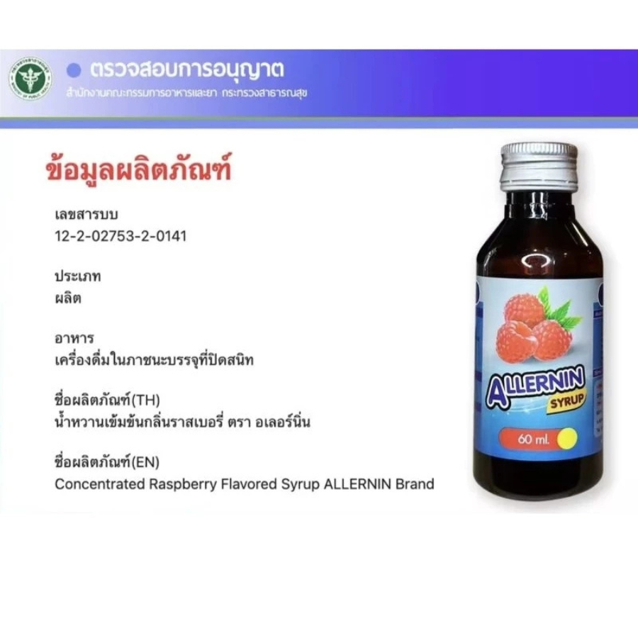 ฝาเงิน 5 ดาว🌟ฝาดาว ของแท้‼️[1ขวด] ALLERNIN น้ำหวาน กลิ่นราสเบอรี่