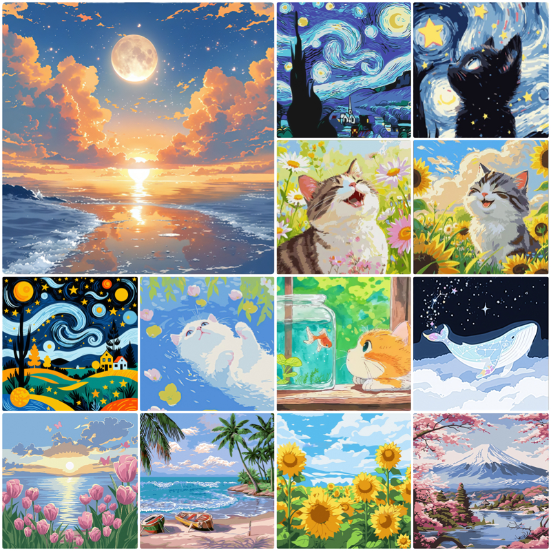 ระบายสีตามตัวเลข 20*20 ซม. รวมสีและพู่กัน ภาพวาดอะคริลิค ภาพวาดสีน้ํามัน ดิจิตอล ของขวัญ ทําเอง