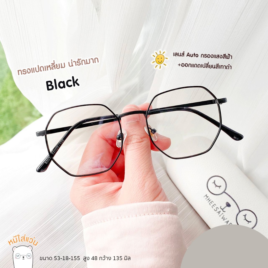 แว่นสายตาสั้น ตัดแว่น มัลติโค้ต ออโต้ ออกแดดเปลี่ยนสีชาน้ำตาล รุ่น betty หมีใส่แว่น