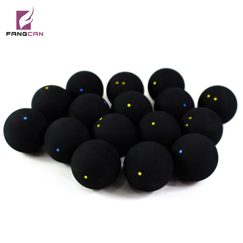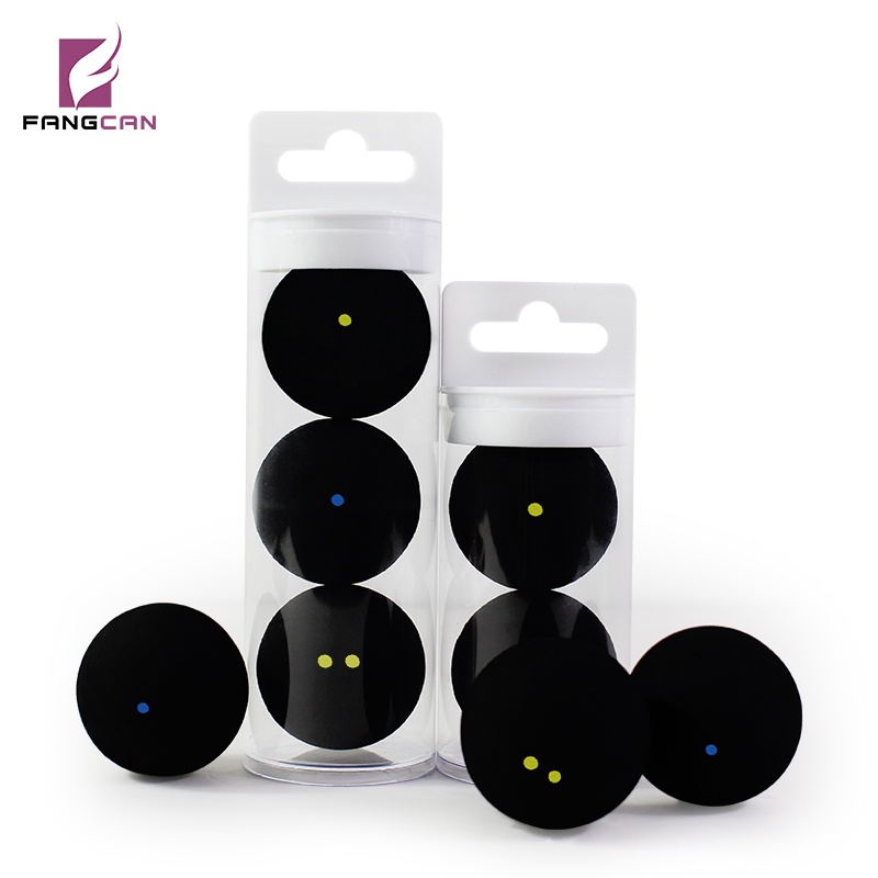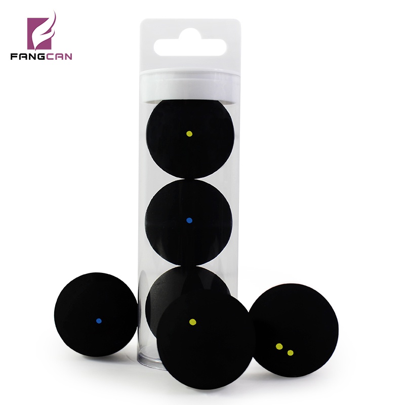 ลูกสควอชจุดสีฟ้าเดียวจุดสีแดงเดียวจุดสีเหลืองเดียวจุดสีเหลืองคู่หนึ่งลูกลงในถุง ตรงกันข้าม หรือ2ชิ้น/หลอดหรือ3ชิ้น/หลอด
