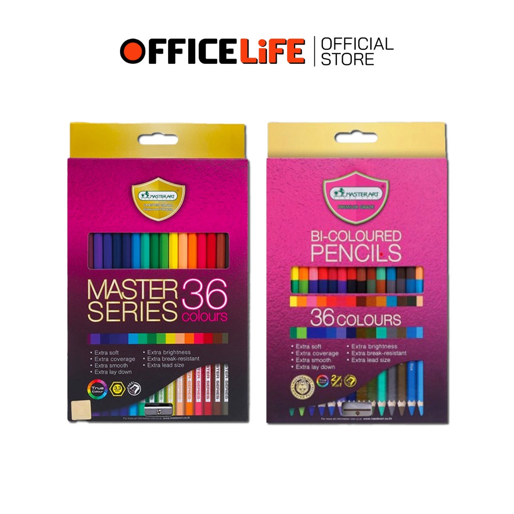 Master Art (มาสเตอร์อาร์ต) ดินสอสี สีไม้ 12 24 36 48 สี มี แบบแท่งยาว 1 หัว และ 2 หัว ( 1 กล่อง )