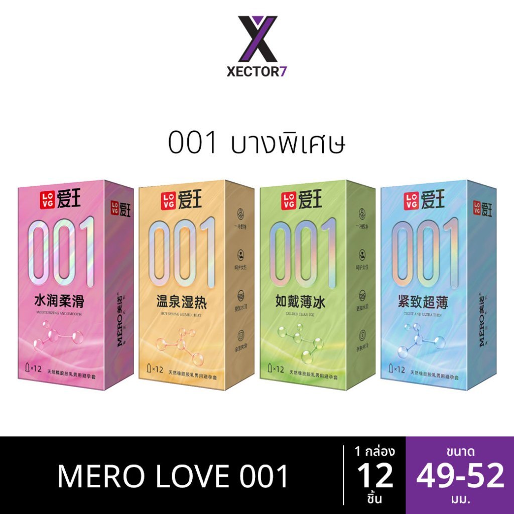 ถุงยาง MERO LOVE 001 บางพิเศษ ขนาด 49 52 (12ชิ้น/กล่อง)