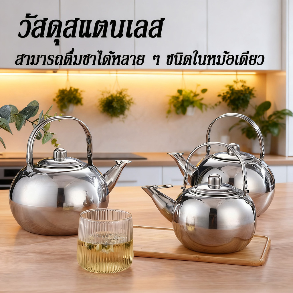 ChokSteel กาต้มน้ำชาสแตนเลสพร้อมไส้กรอง ดีไซน์คลาสสิก ขนาด 14/16/18/20 cm
