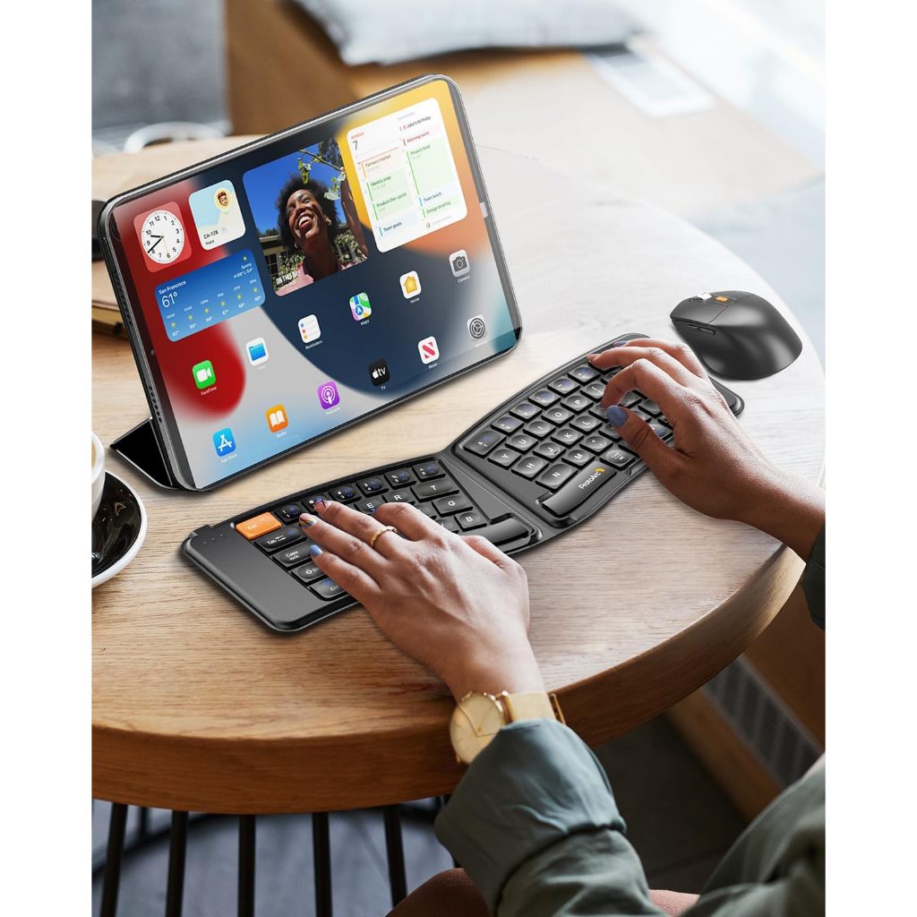 ProtoArc XKM03 คีย์บอร์ดและเมาส์พับได้ เพื่อสุขภาพ ไร้สาย Bluetooth 3 ช่อง ชาร์จได้ พร้อมเคสพกพา รับประกันทั่วโลก 2 ปี