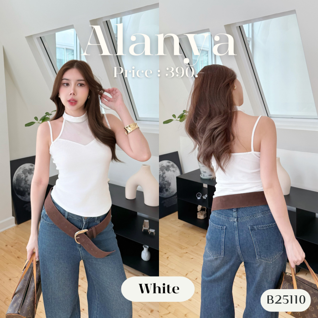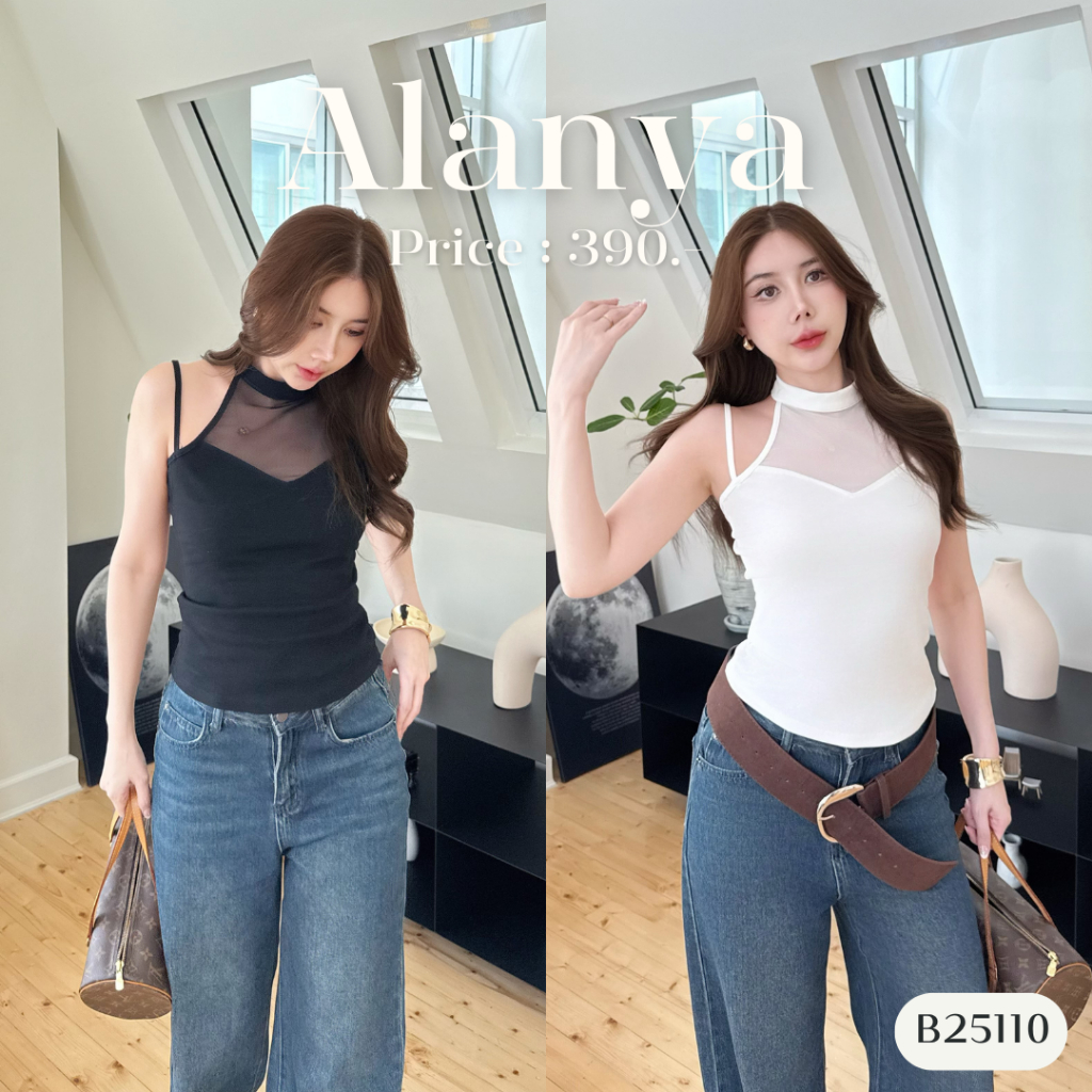 เสื้อแขนกุด ช่วงไหล่ซีทรู พอดีตัวเก๋ๆ B25110 l ALANYA [ซื้อครบ1,000 แถมเครื่องประดับ]