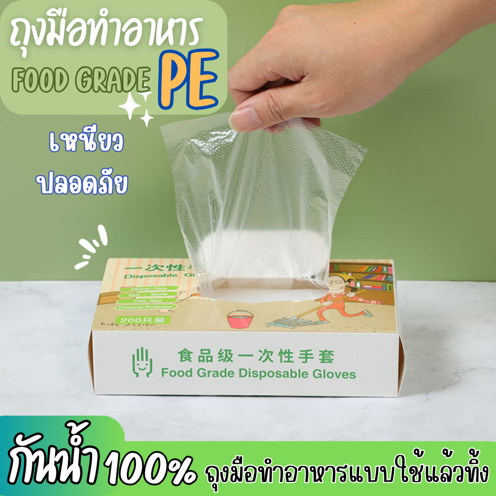 [500ชิ้น] ถุงมือทำอาหาร ถุงมือPE เกรดอาหาร (Food Grade) กันน้ำ100% ถุงมือพลาสติก