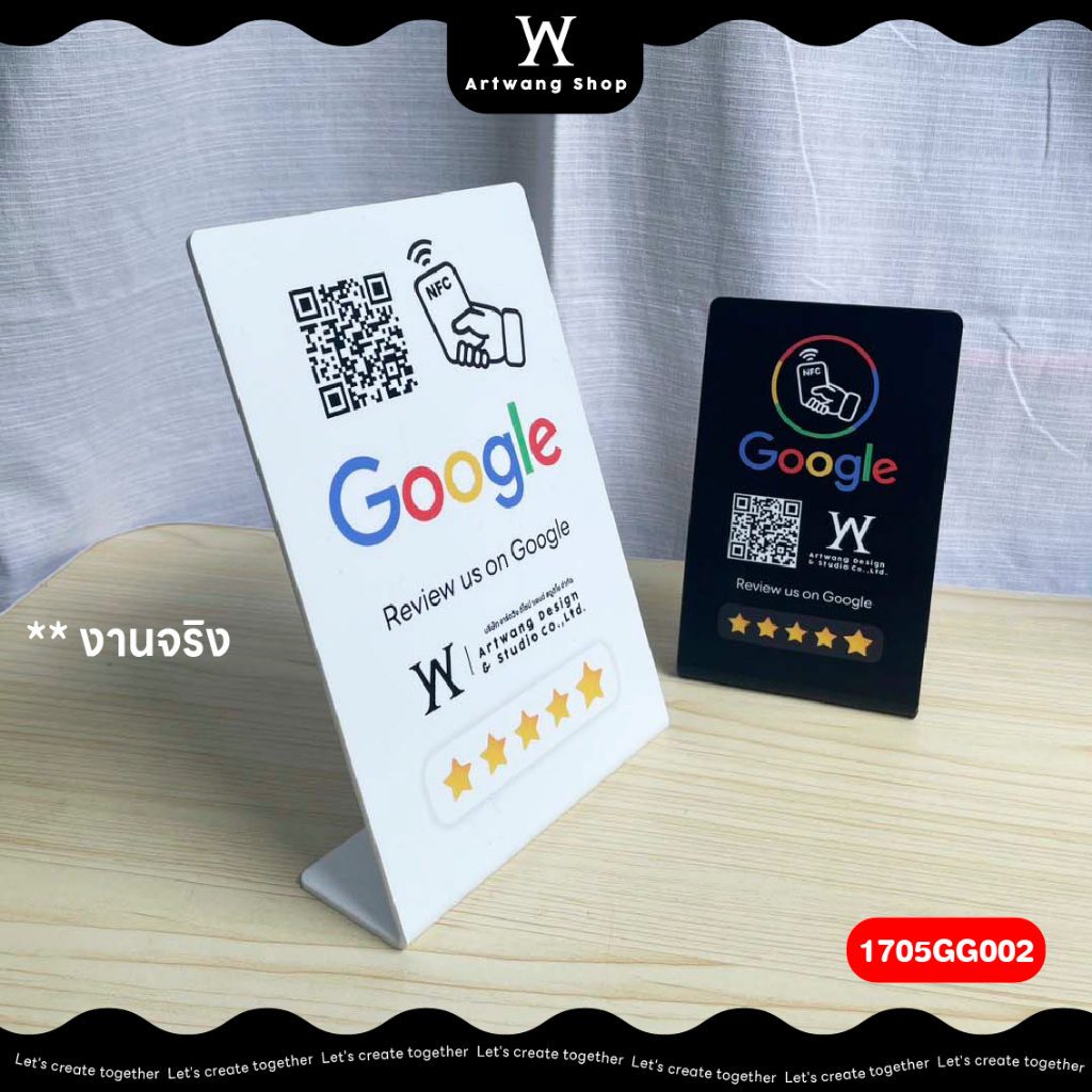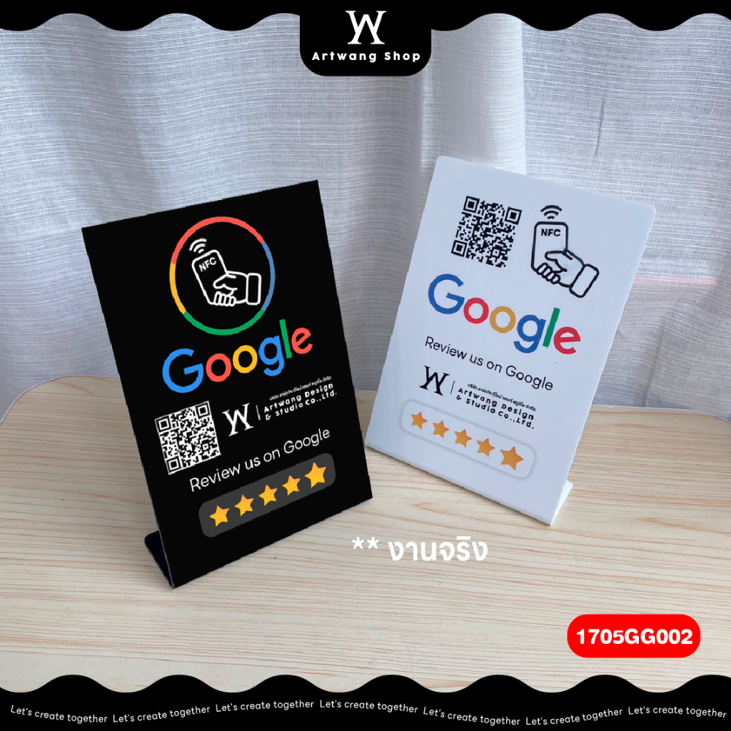 ป้าย NFC แบบฐานเอียง หน้าเดียว Google Review ป้ายรีวิว การ์ดรีวิว ใส่โลโก้ใส่คิวอาร์โค๊ดได้
