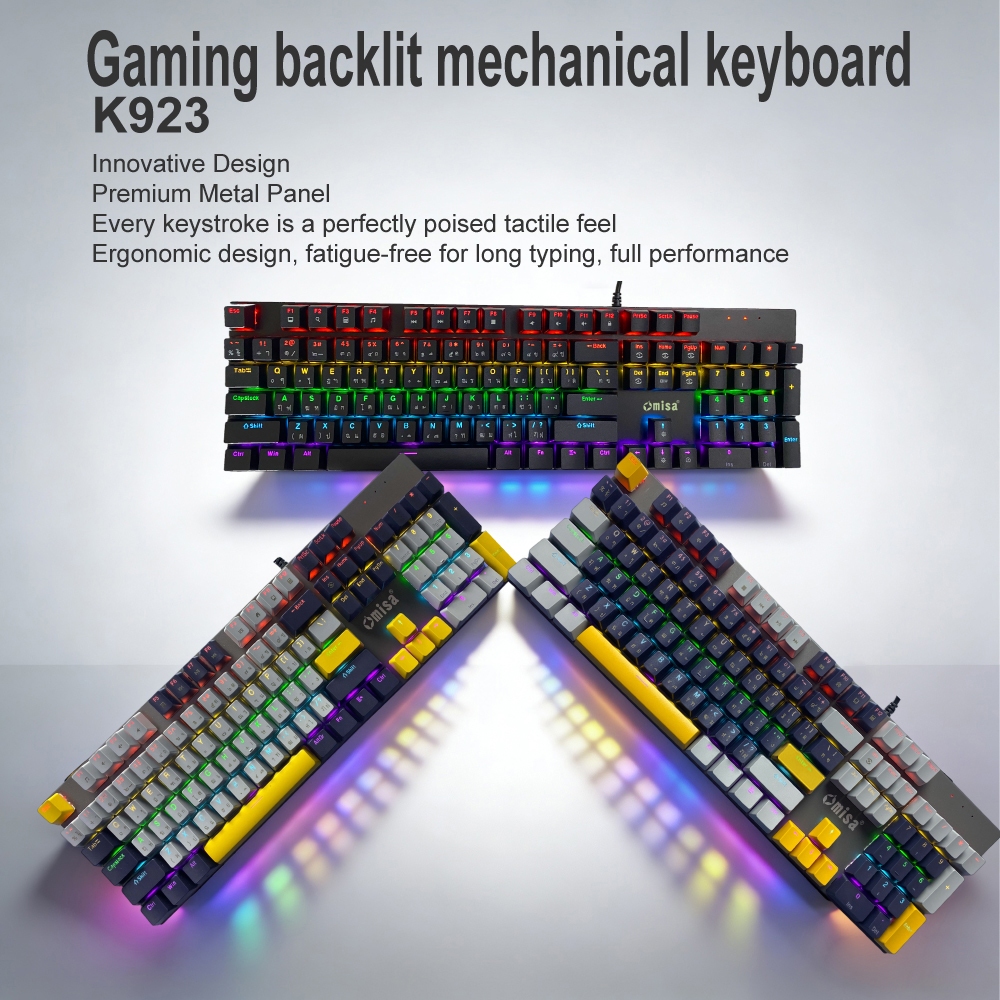 [ซื้อK923+แถมฟรี Mouse TF-128(สีขาว)]OMISA K923 คีย์บอร์ดเกมมิ่ง MECHANICAL ปุ่มBLUE SWITCH & ปุ่มRED SWITCH