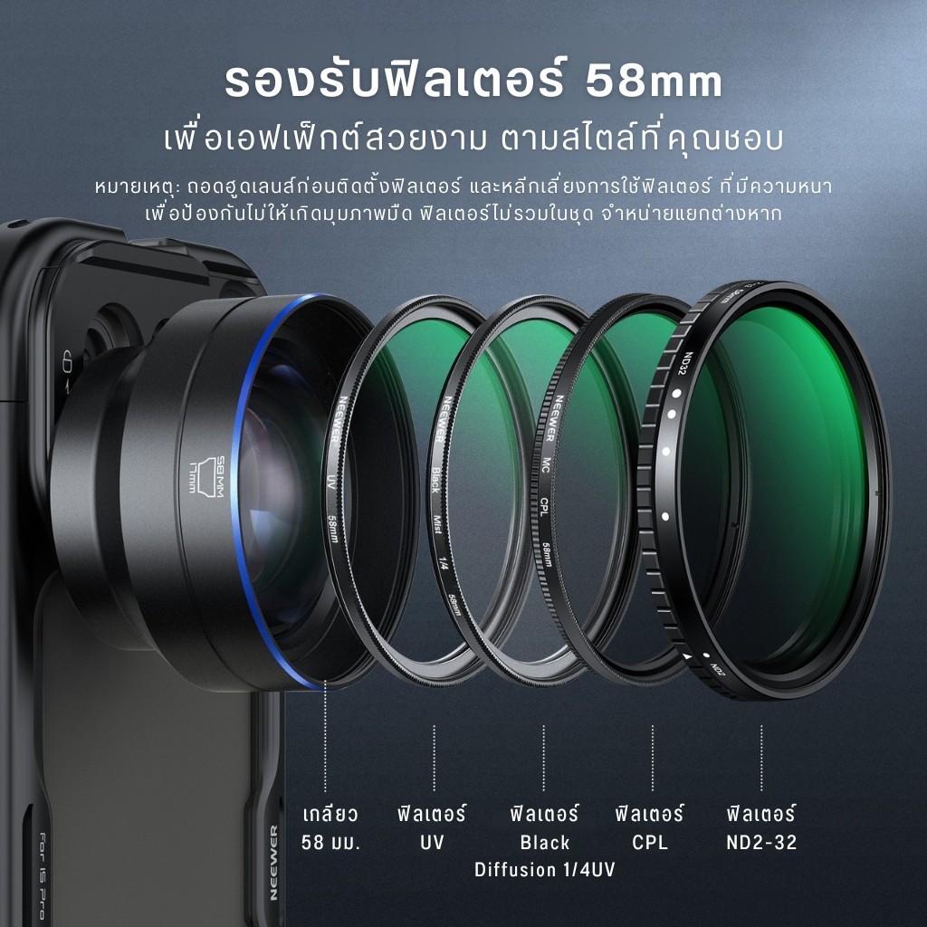 NEEWER LS-66 Telephoto Lens เลนส์มือถือ เลนส์ซูม ถ่ายนก อัตราขยายภาพ 1.7X พร้อมเลนส์ฮูดมือถือ