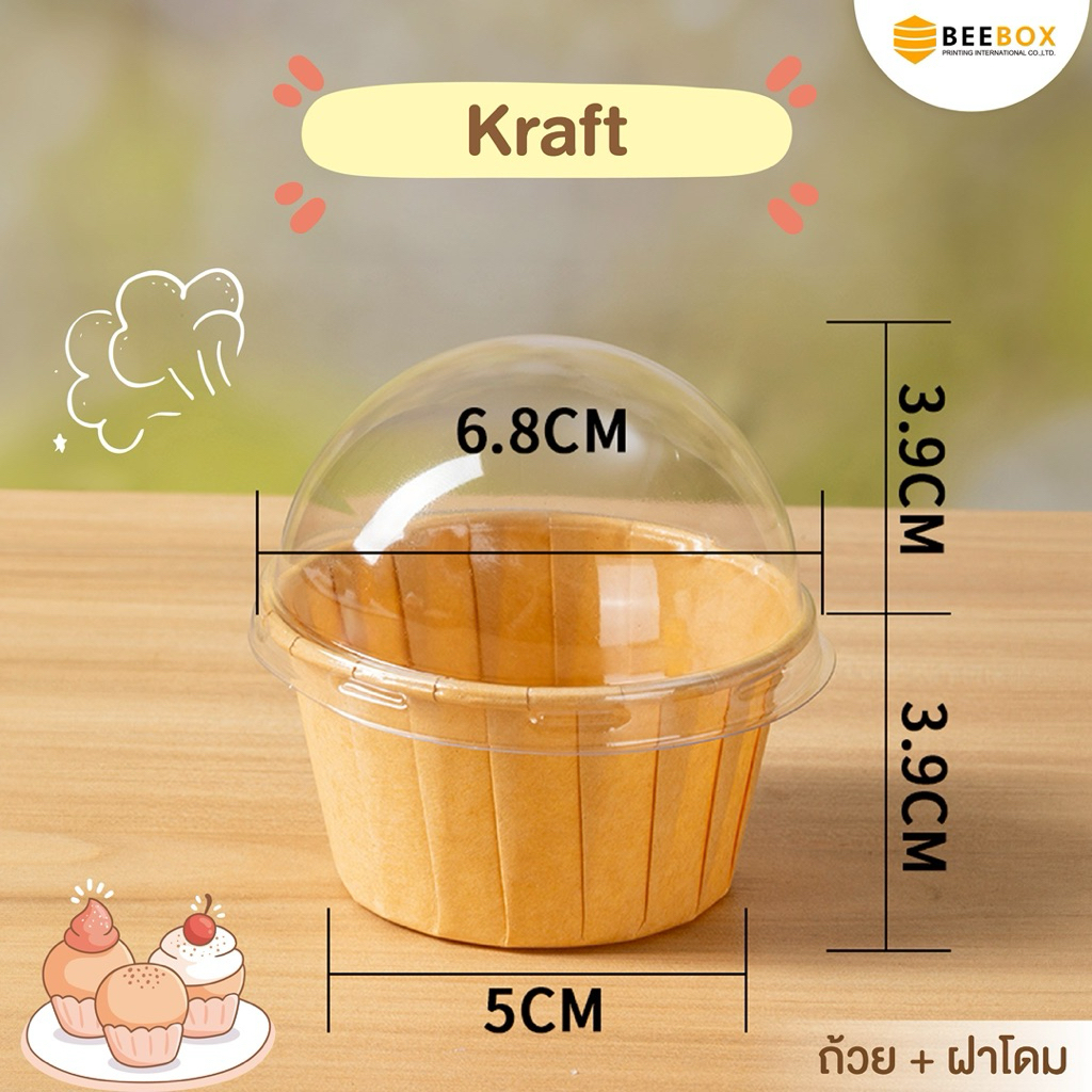 ถ้วยคัพเค้ก พร้อมฝาโดม พาสเทล อบได้ (1 แพค 20 ชุด)