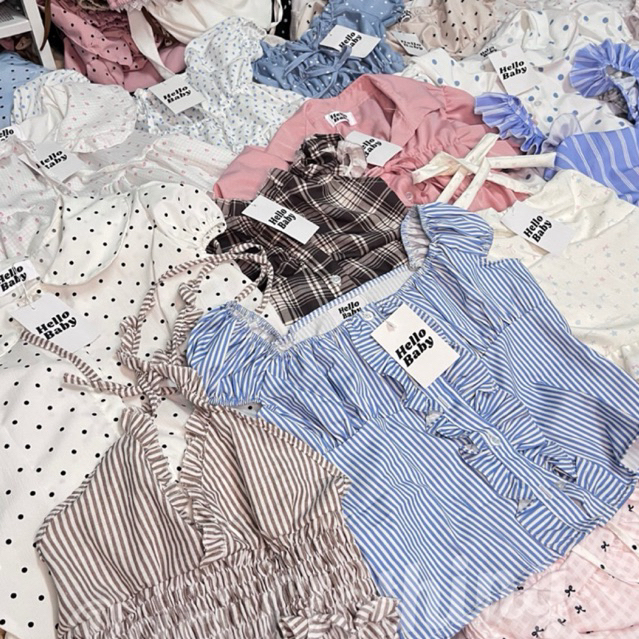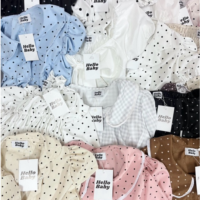 ส่งเร็ว⚡️เสื้อแฟชั่น(2) เสื้อป้าย hello baby คอบัว ปาดไหล่ สายเดี่ยว เสื้อน่ารัก(อัพเดท21-4-69)