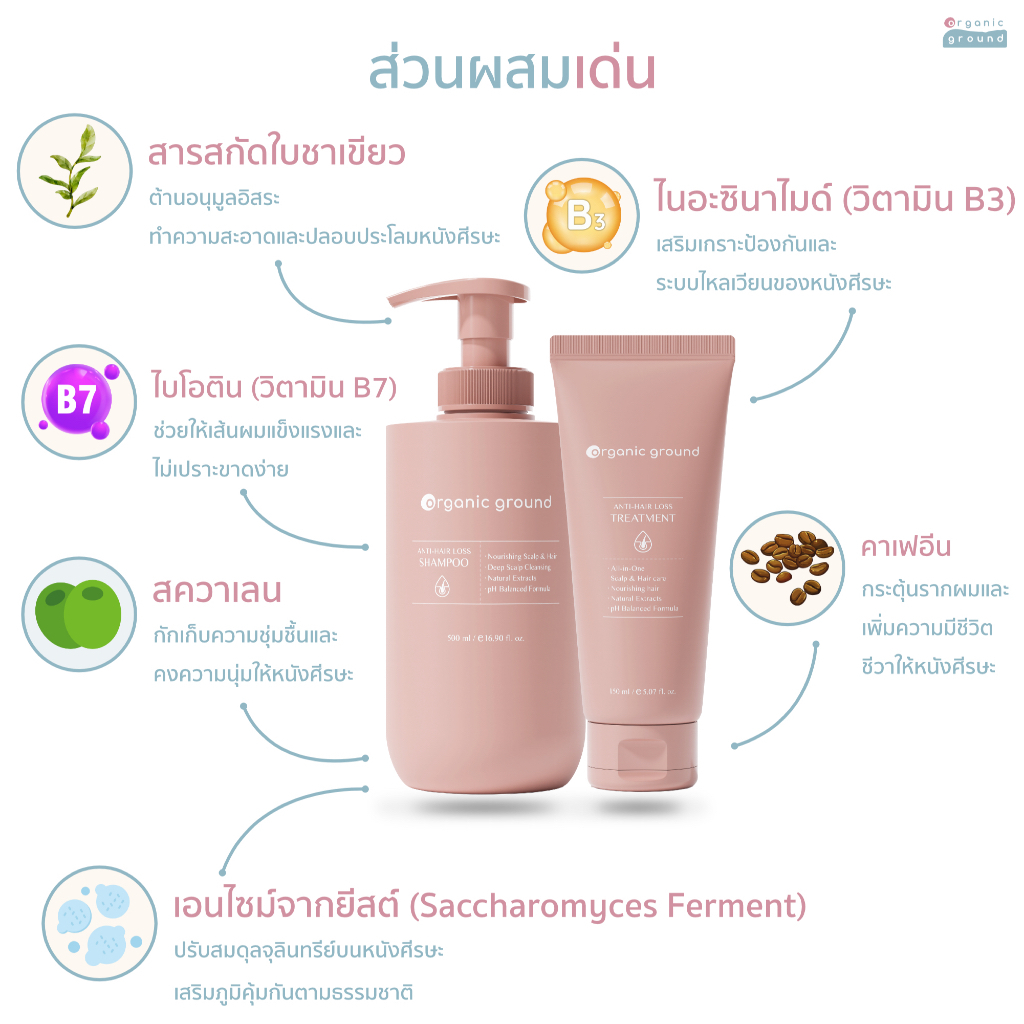 แพ็คคู่ Organic Ground Anti-Hair Loss Shampoo & Treatment แชมพูและทรีตเมนต์สำหรับคุณแม่ ช่วยลดผมร่วง
