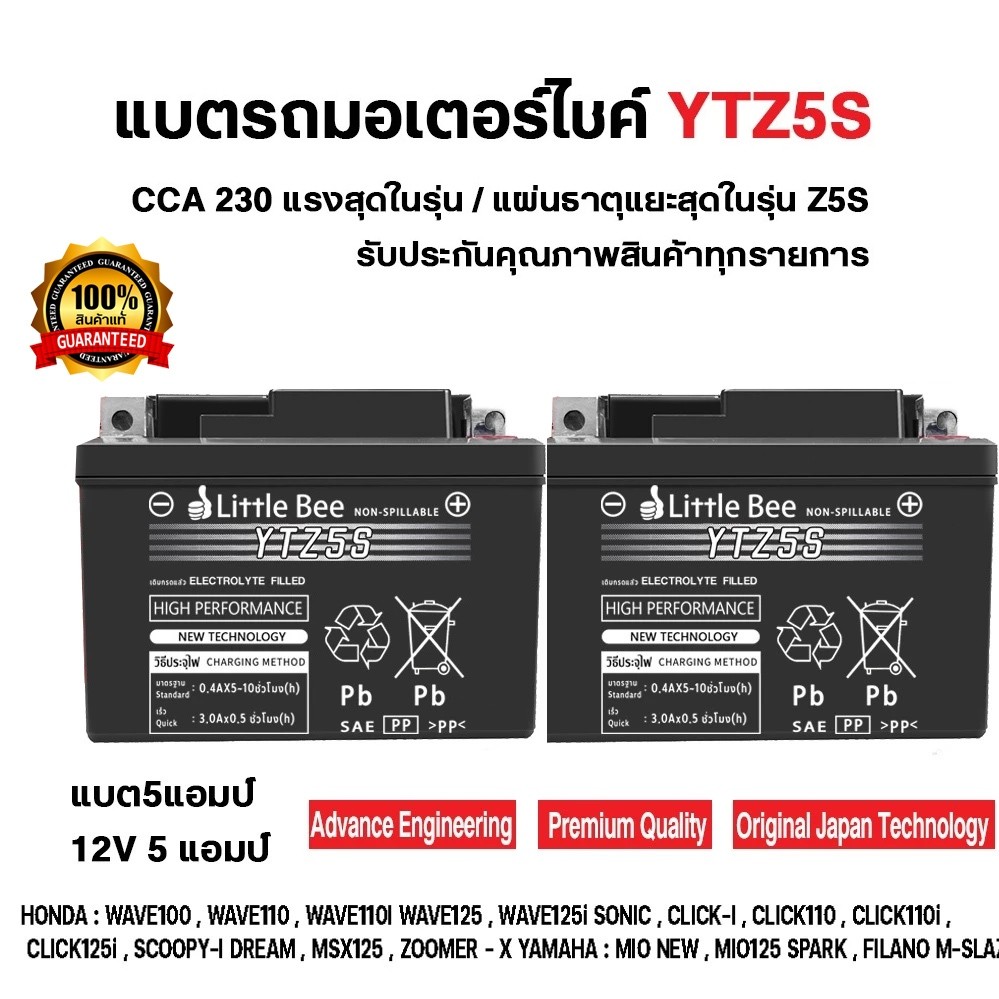 รับประกัน 1 ปี แอมป์ YTZ5s12v5ah เวฟ110i YTZ5S 5แอมป์ แบตแห้ง wave dream click msx scoopy zoomer fino