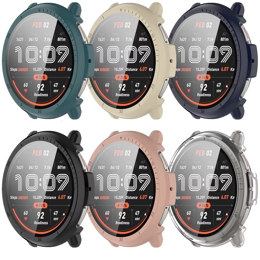 เคส Amazfit Active 2 / Active 2 Premium 44 mm (TPU และฟิล์มกระจกนิรภัย PC) สวยงามมีหลากหลายสี