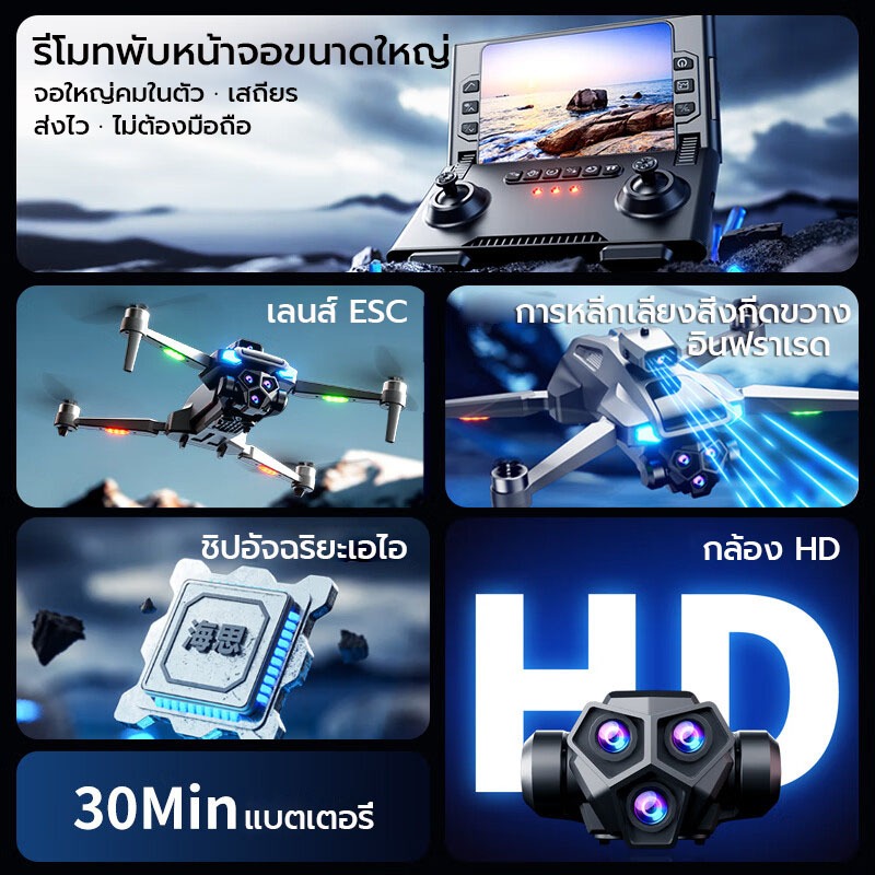 รุ่นใหม่ล่าสุด2026 โดรน M66MAX กล้องคู่ 4K ESC รีโมตพับ จอใหญ่คม แบตเตอรี่บินได้นาน 25min drone brushless