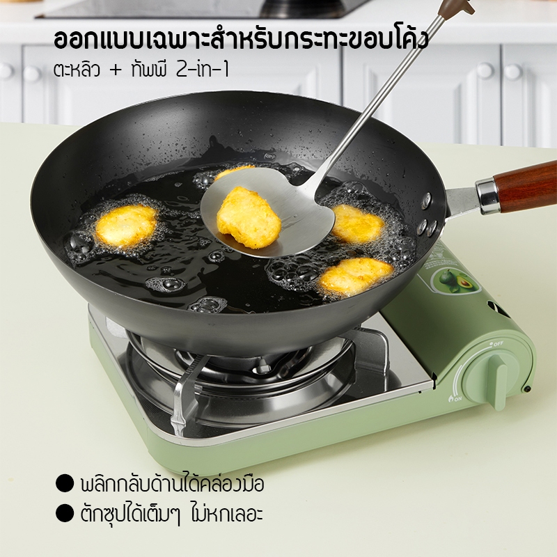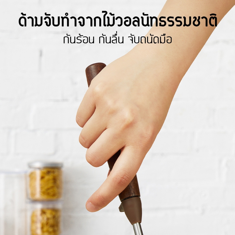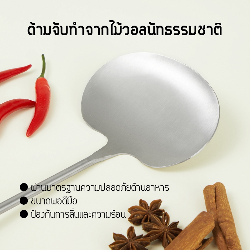 ตะหลิวทรงเห็ด SyncShine วัสดุสแตนเลสแท้ ฟู้ดเกรด 304 คุณภาพดี ตะหลิวทำอาหาร 2 in 1 ตะหลิว+ทัพพี ผัดก็ดีตักน้ำซุปก็ได้ ด้ามจับไม้วอลนัท ยาว 40 ซม. ใช้ได้กับทุกกระทะ ทัพพีทำอาหาร,ตะหลิวทำอาหาร,เครื่องครัว, ชุดอุปกรณ์ครัว,ของใช้ในครัว, ทัพพีด้ามไม้,ส่งไ