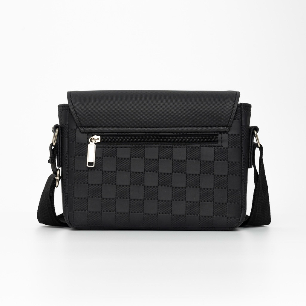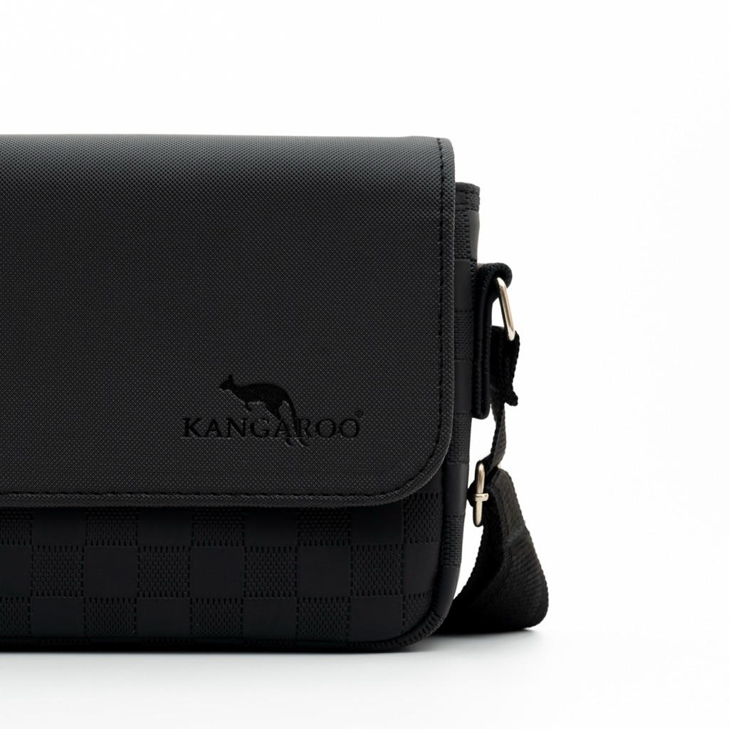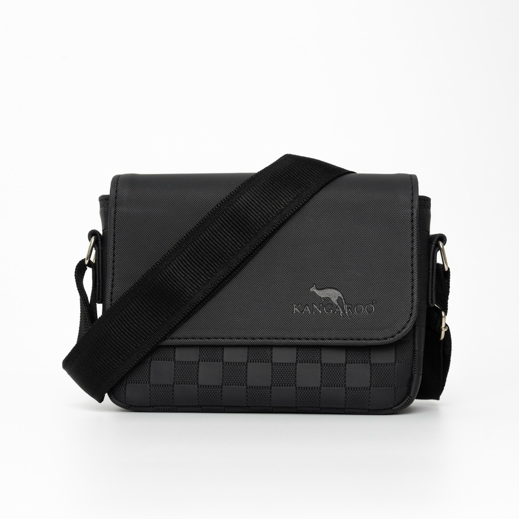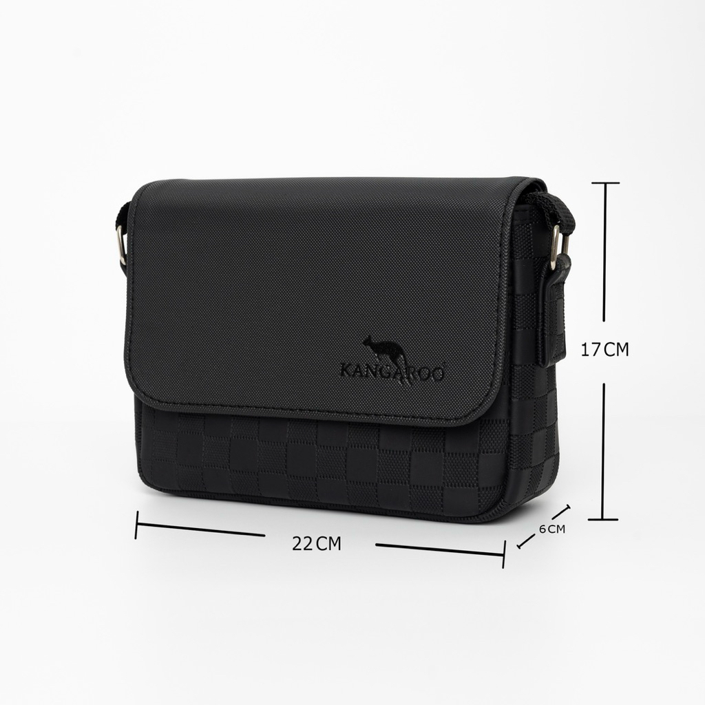 กระเป๋าสะพายข้าง Kangaroo หนัง PU ลายตารางฝาเรียบ ขนาด 8.5 นิ้ว Made in Thailand