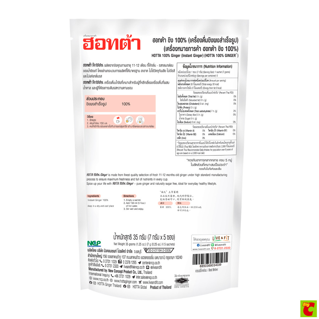 ฮอทต้า ขิงผง 100% ขนาด 35 กรัม