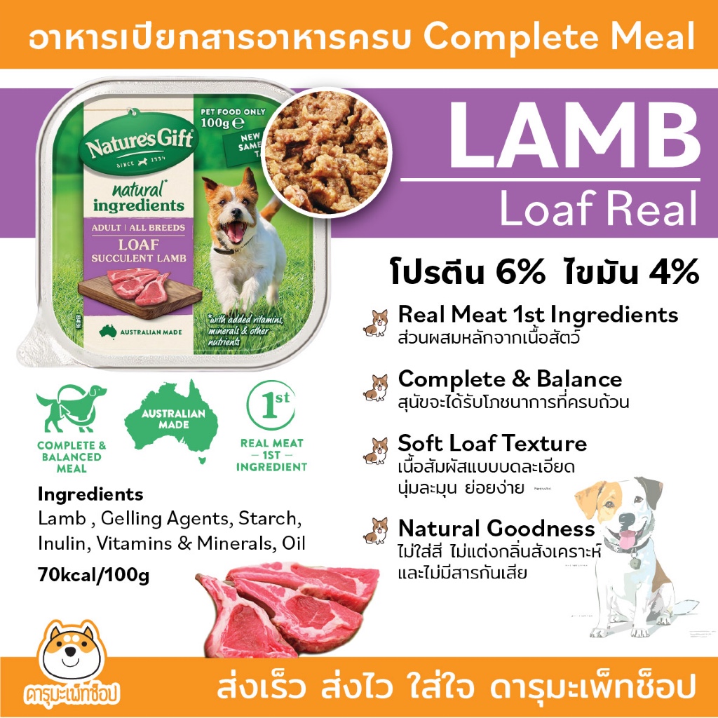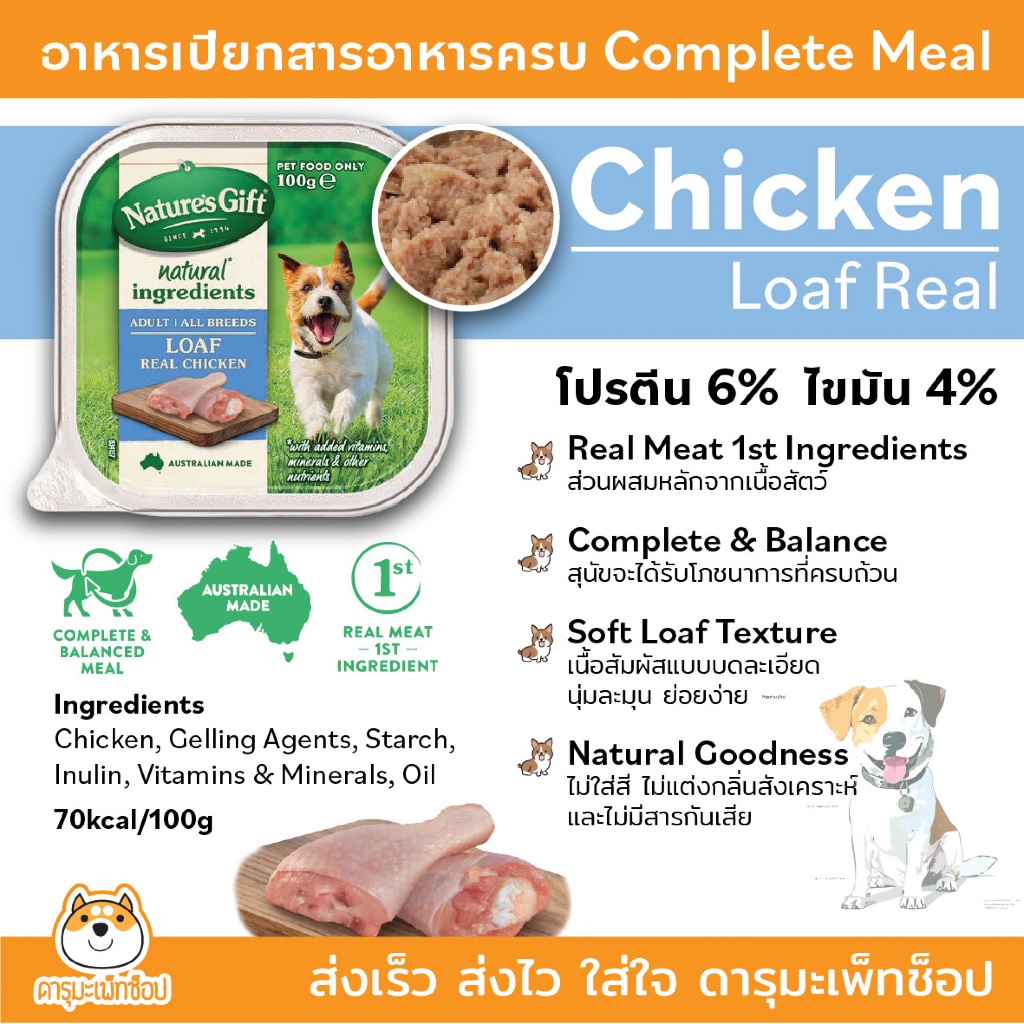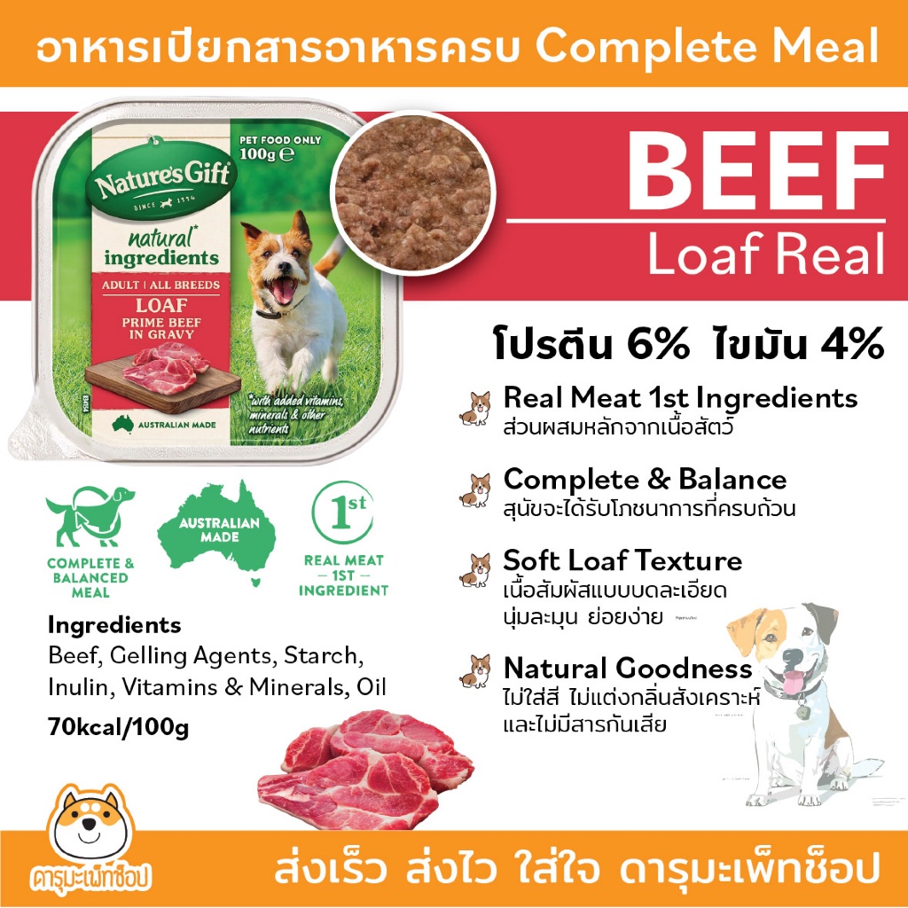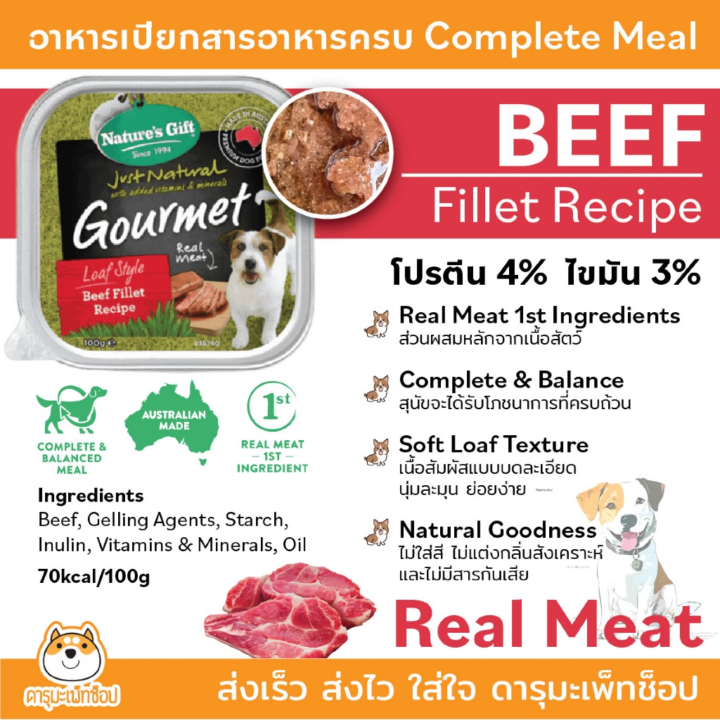 สารอาหารครบ กินง่าย หอม อาหารเปียกสุนัข Nature's Gift เนเจอร์ส กิ๊ฟท์ อาหารเปียกสำหรับสุนัข 2เดือนขึ้นไป 100g