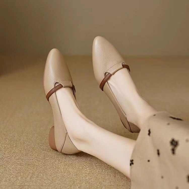 Queen รองเท้าหนัง Flats แบบหัวสูง PU Leather คุณภาพดี รองเท้าส้นเตี้ยหรูดูแพง