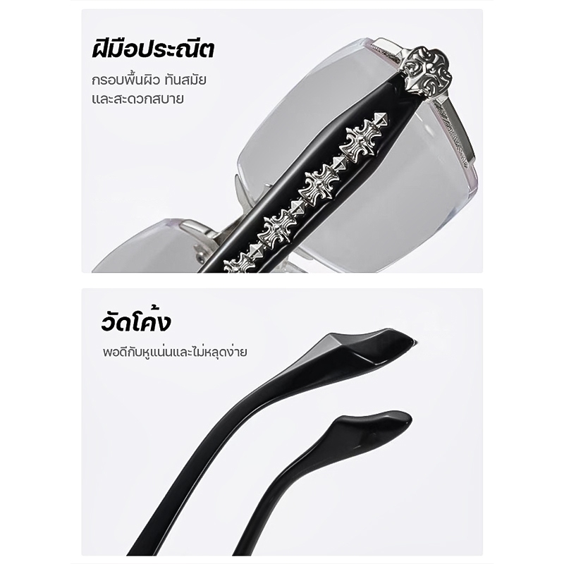 แว่นสายตาสั้น แว่นกรองแสง ฟ้า แท้ ไร้กรอบ เลนส์ออโต้ ออกแดดเปลี่ยนสี กันรังสี Super Auto Lens กันUV99% แฟชั่น unisex