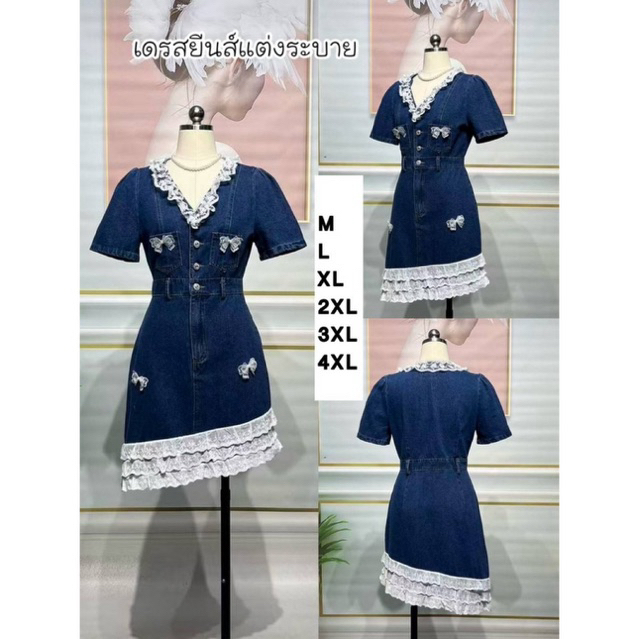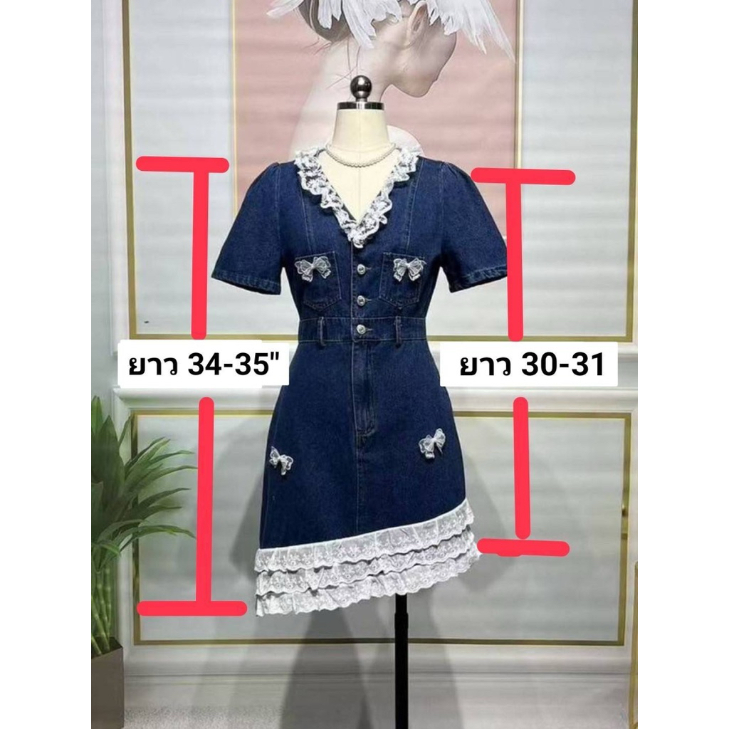 (m-2xl) เดรสยีนส์ เดรสสั้น แต่งระบายลูกไม้ ติดอะไหล่โบว์ น่ารักมากๆ งานป้าย ananya