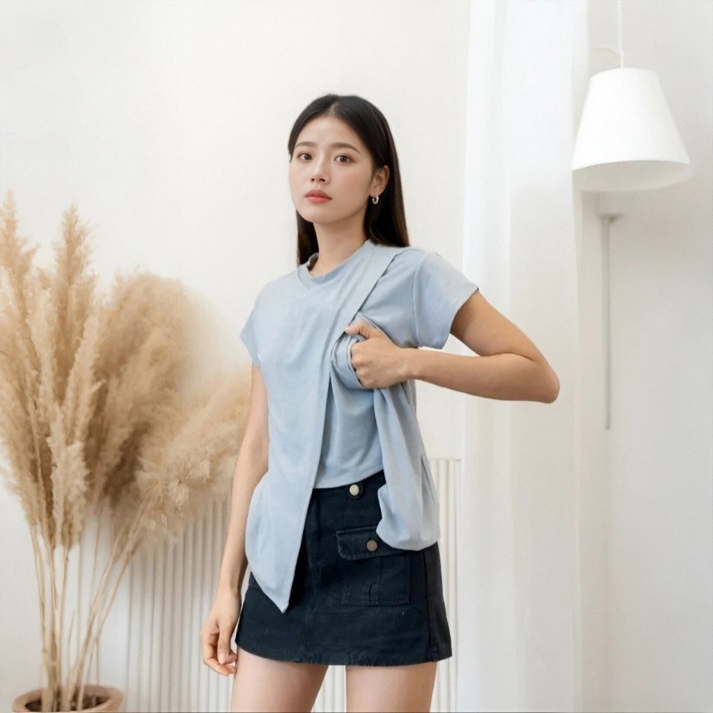 เสื้อให้นมแฟชั่น ผ้าคอตตอนนุ่ม ใส่แล้วไม่อึดอัด
